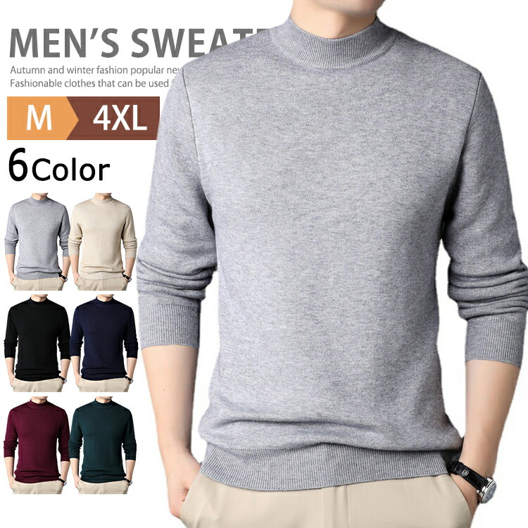 ニットメンズ長袖防寒セータータートルネ トップス ニット セーター 豊富な品揃え M L XL 2XL 3XL 4XL 黒 グレー ベージュ ネイビー グリーン レッド