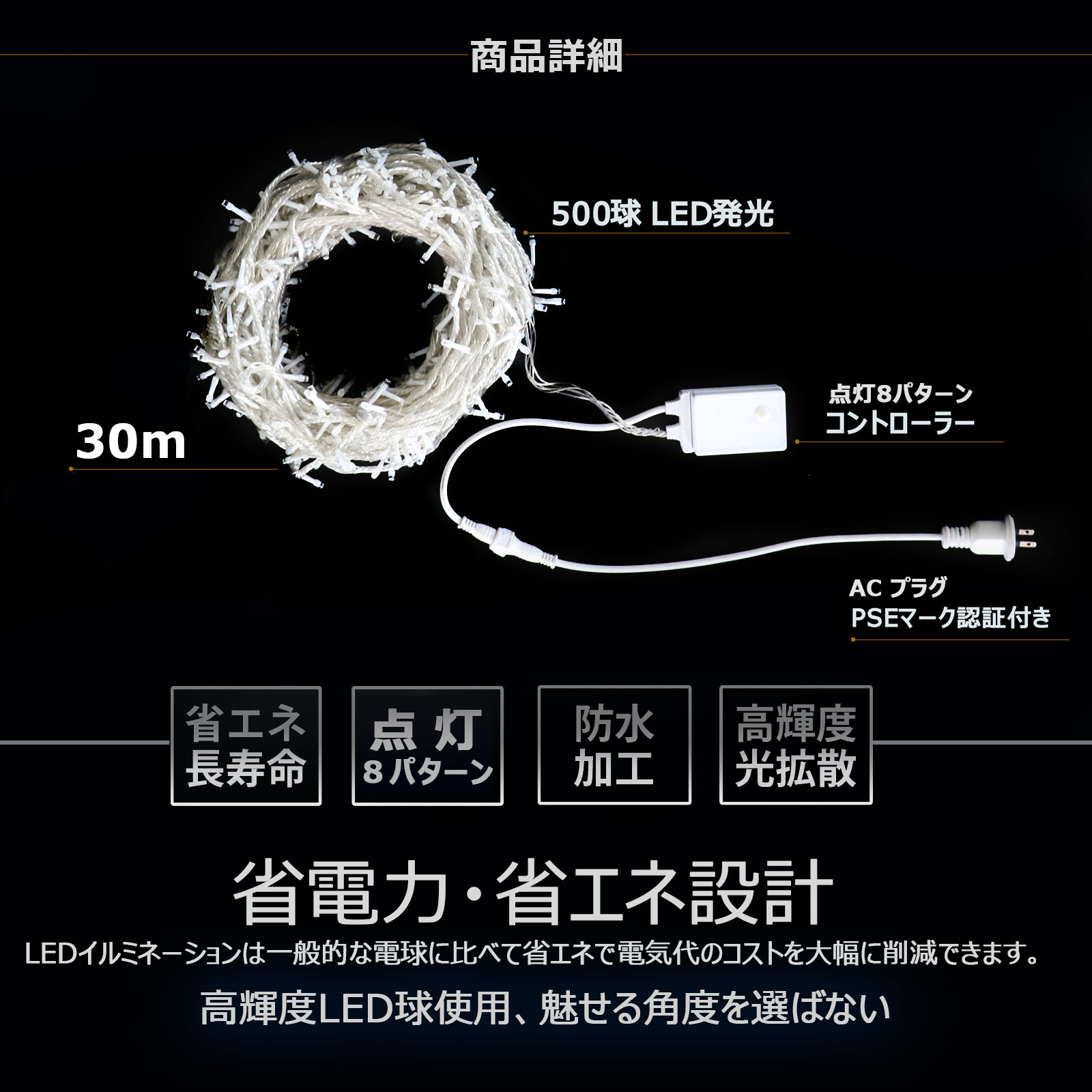 イルミネーション 500球 30m 防 青 黄 白 RGB