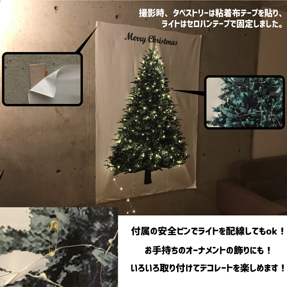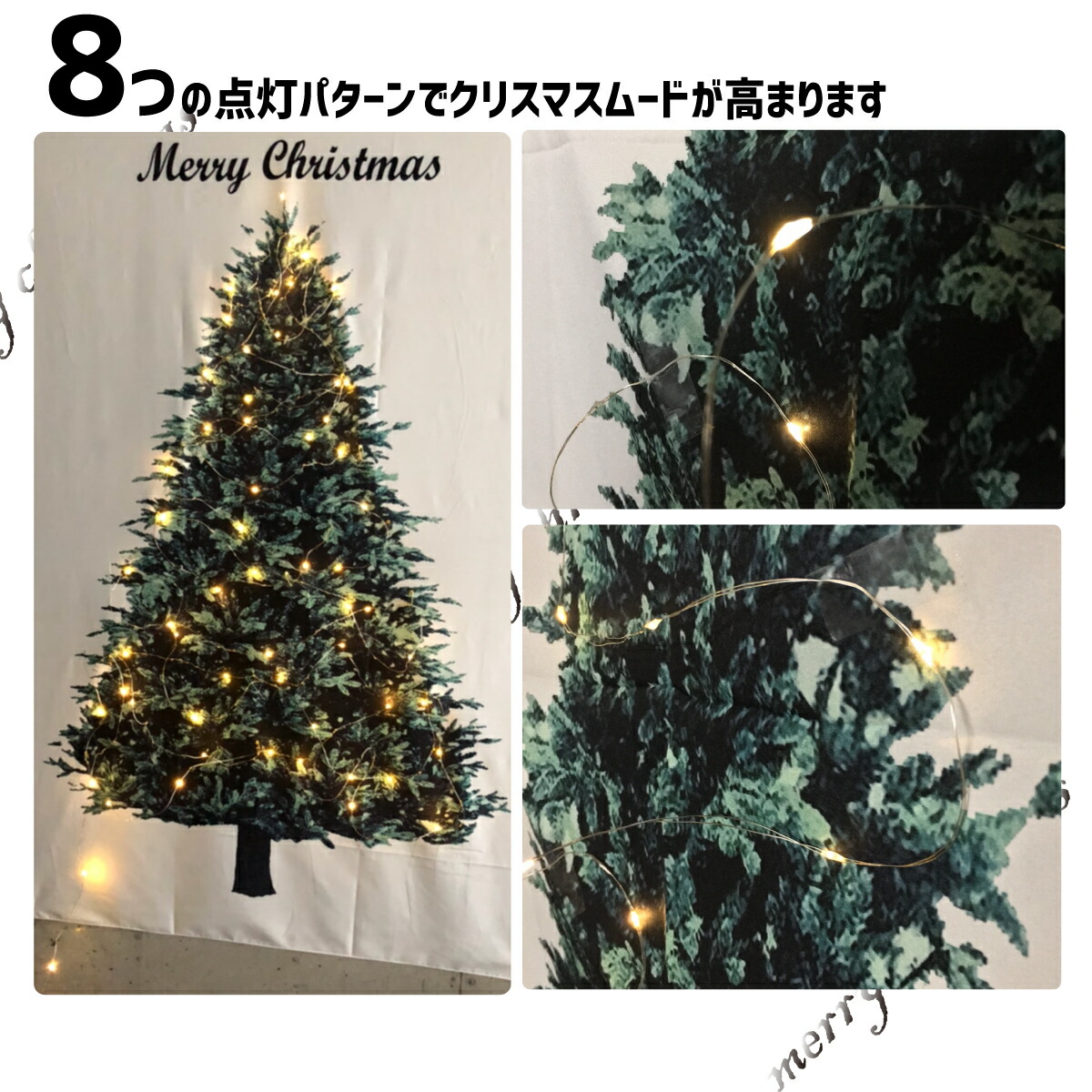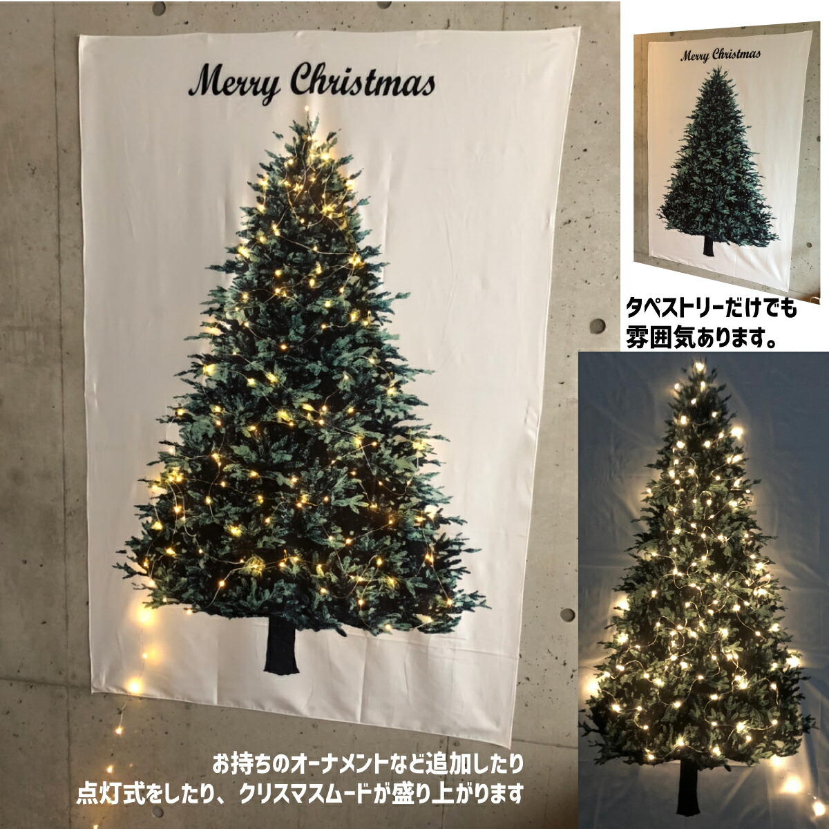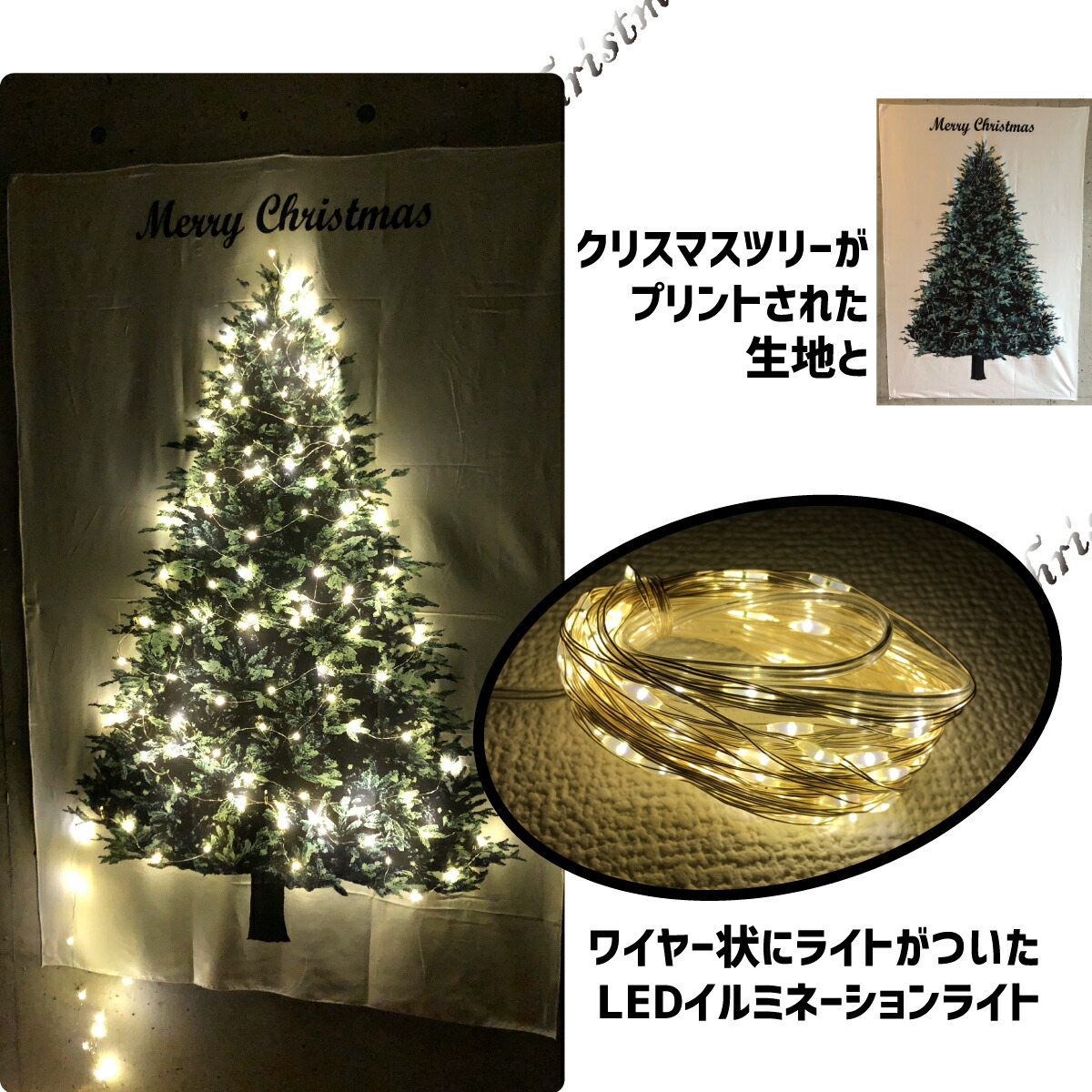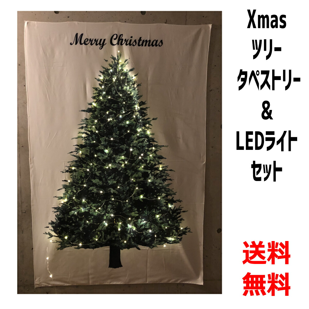 クリスマスツリー タペストリー & LEDイルミネーションライト 2点セット クリスマス 壁掛け ツリー ジュエリーライト 北欧 おしゃれ オーナメント