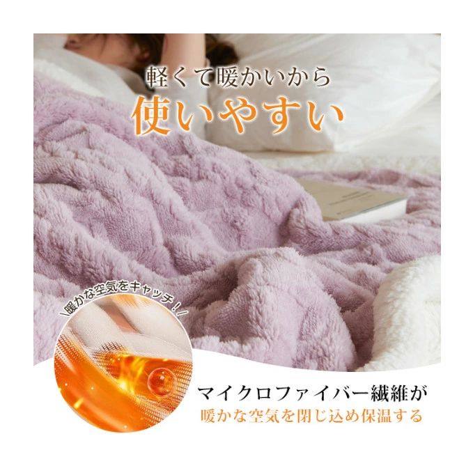 ・普通なブランケットより約1.5倍の高密度マイクロファイバー生地を採用。キメ細やかな繊維が、ふわふわで柔らかな肌触りで体を優しく包み込みます。