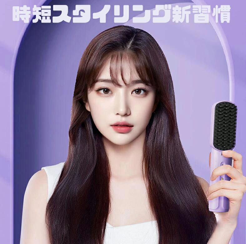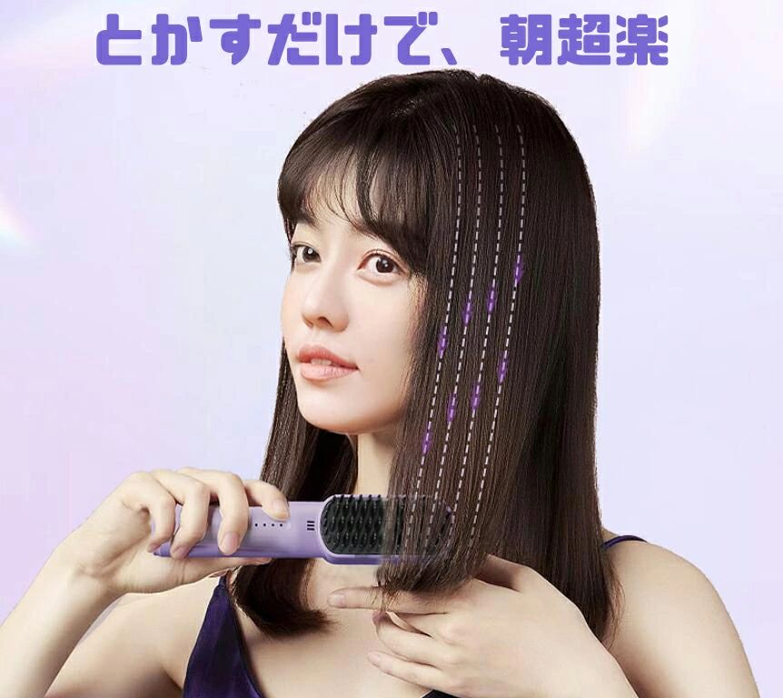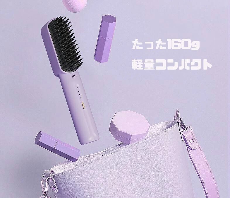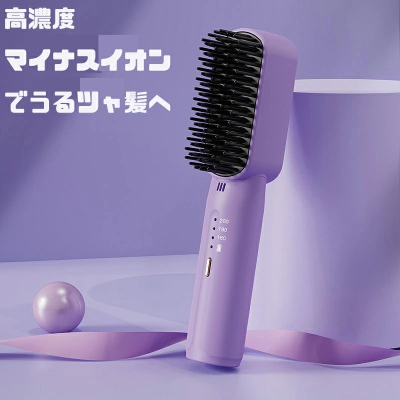 ヒートブラシ コードレスブラシアイロン パープル ブラック