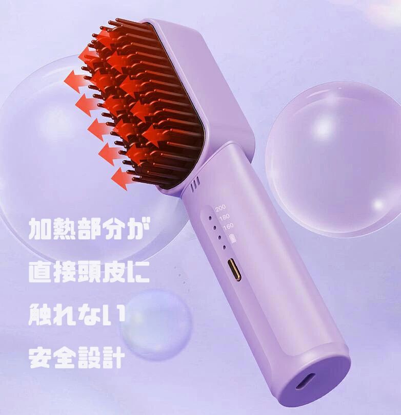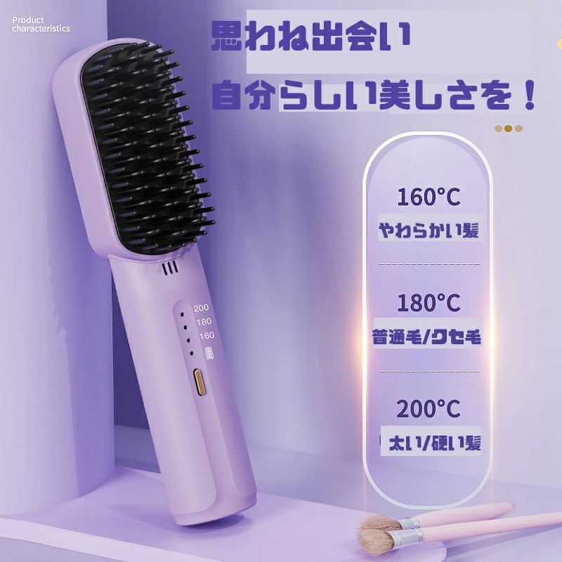 ヒートブラシ コードレスブラシアイロン ストレートブラシ クイックスタイリング USB充電式 マイナスイオン コンパクト 3段階調節 静電気防止 ブラシアイロン ブラシ型 ヘアアイロンブラ オートオフ