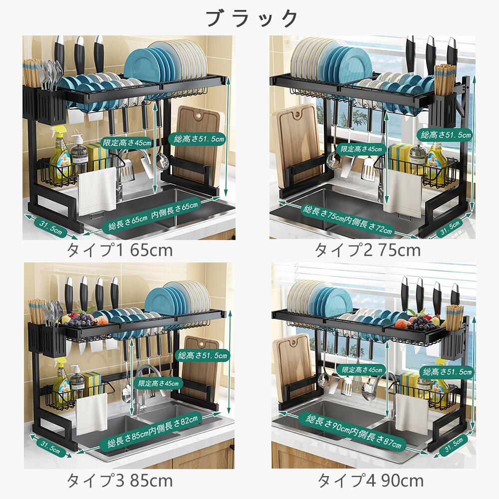 水切りラック シンク上 2段 水切りか キッチン用品 食器 調理器具 超目玉商品 ステンレス ブラック 65*31.5*51.5 75*31.5*51.5 85*31.5*51.5 90*31.5*51.5