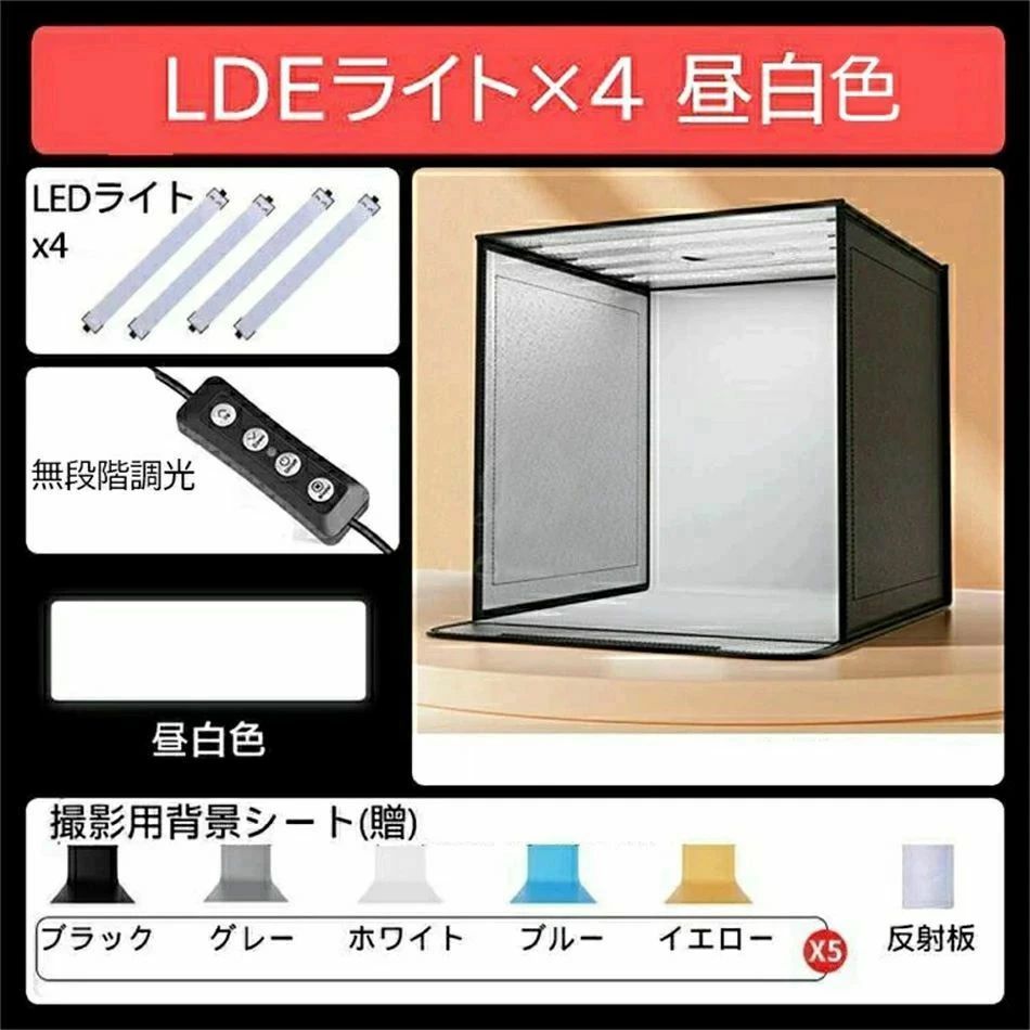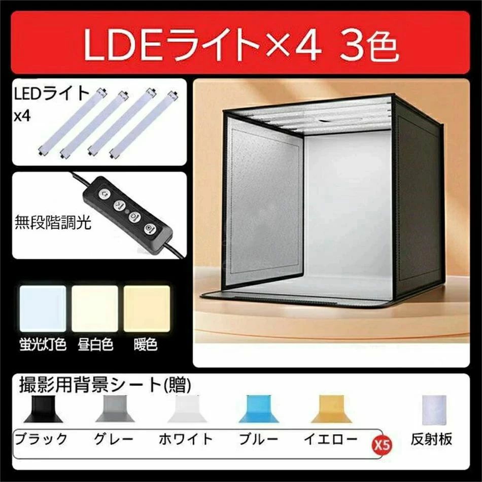 撮影キット 撮影ボックス LEDライト LDEライト×4 昼白色 LDEライト×4 3色 40cm(25*25*25cm以内もの対応) 60cm(45*45*45cm以内もの対応) 80cm(65*65*65cm以内もの
