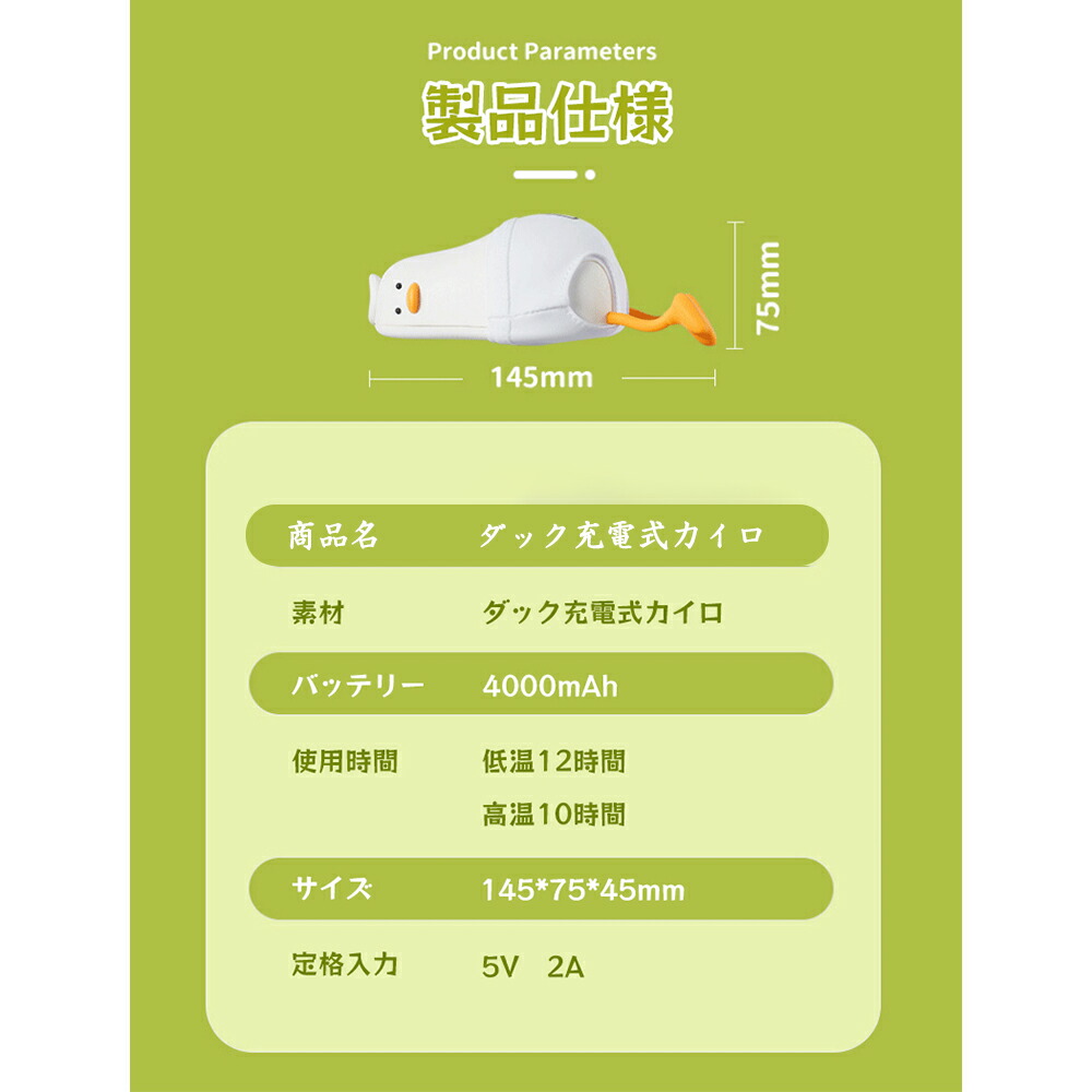 電気 カイロ アヒル型 ハンド ウォー