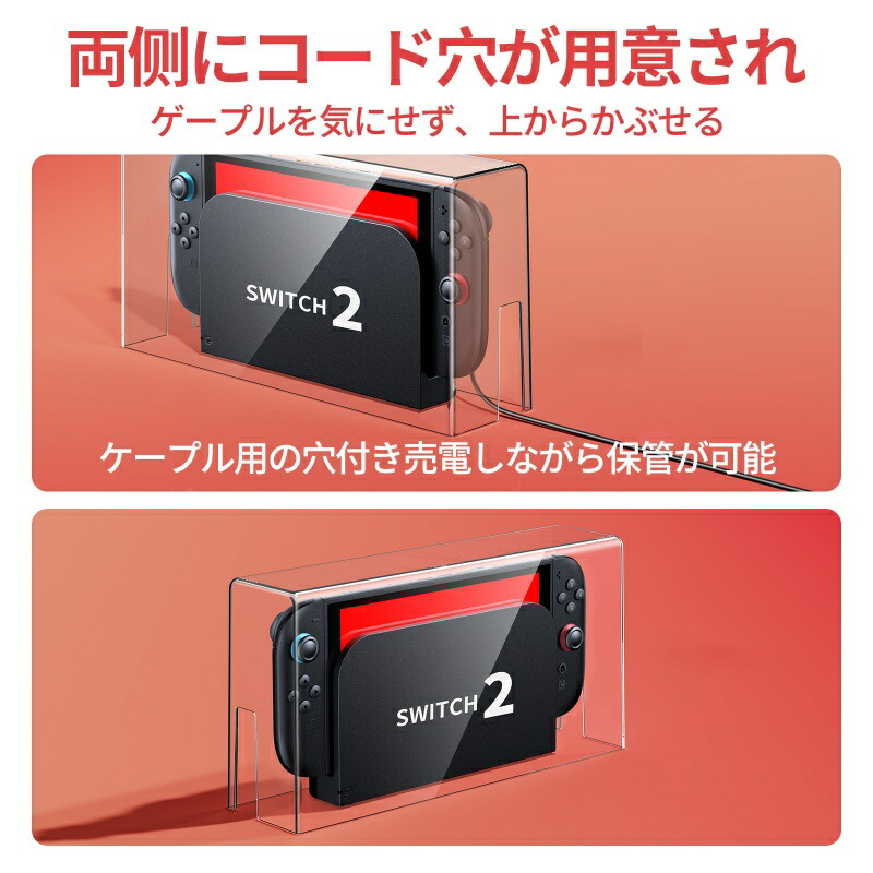 switch2 ドックケース ドックカバー ケース クリア 保護 ニンテンドー スイッチ 2 収納ケース Switch2対応 カバー 耐衝撃 防塵ケース 防水 透明 シンプル ケーブル用 防塵
