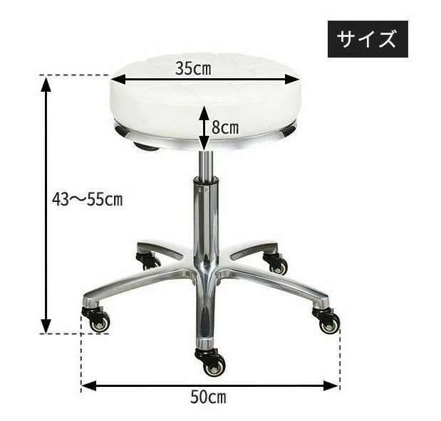 スツール 厚手クッション キャスター付 ホワイト ブラウン ブラック グレー ネイビー
