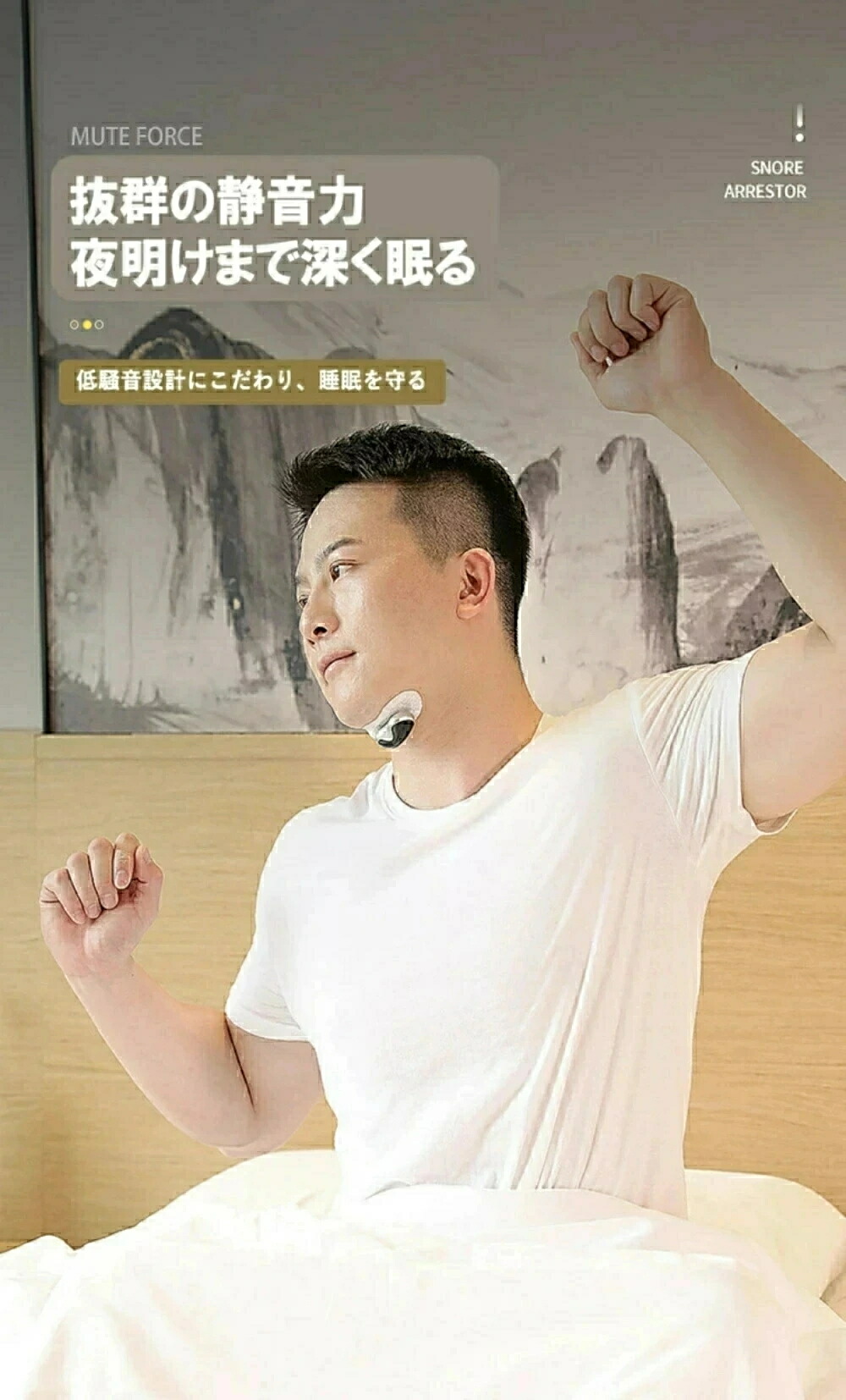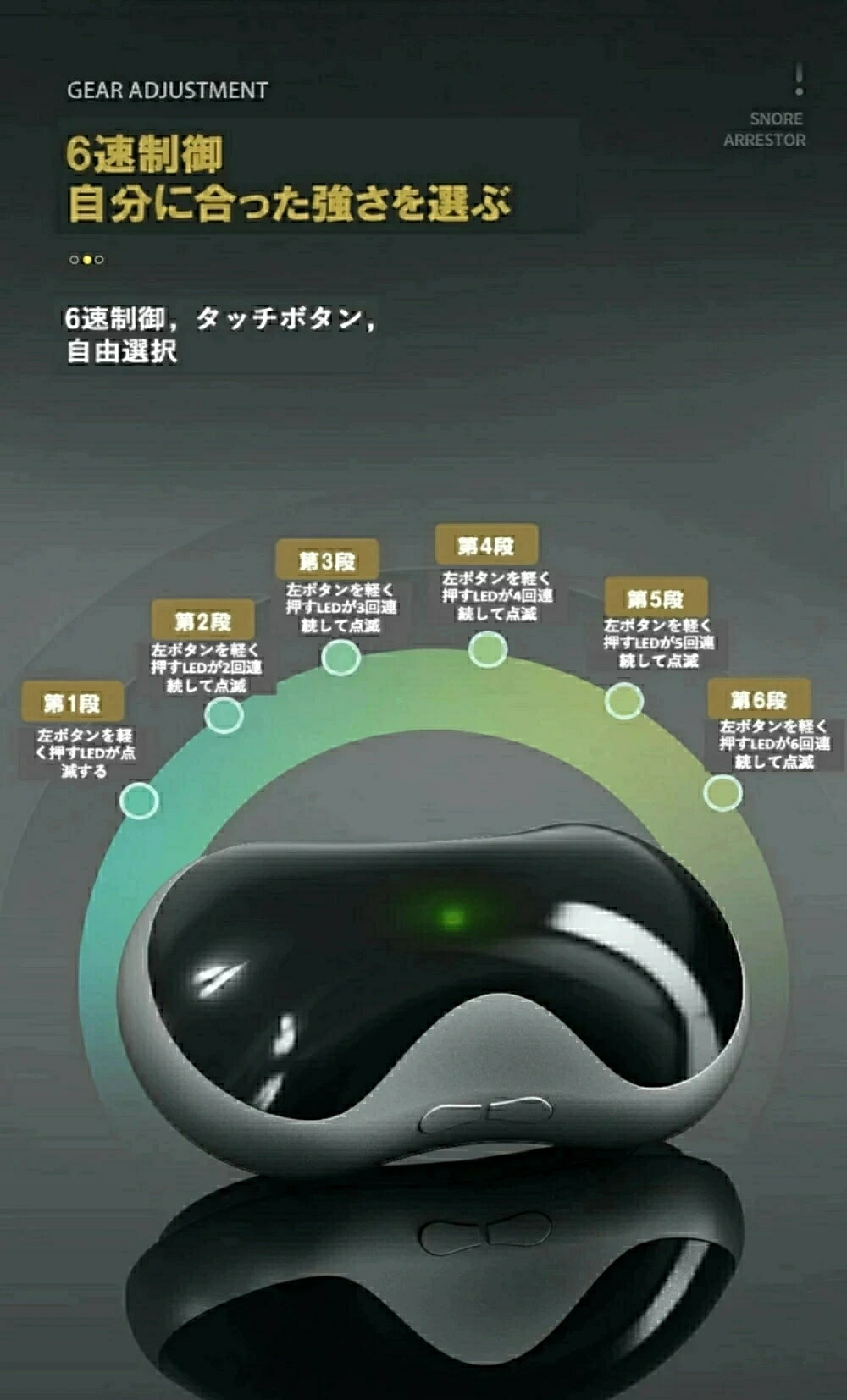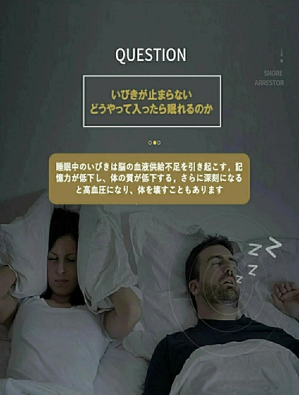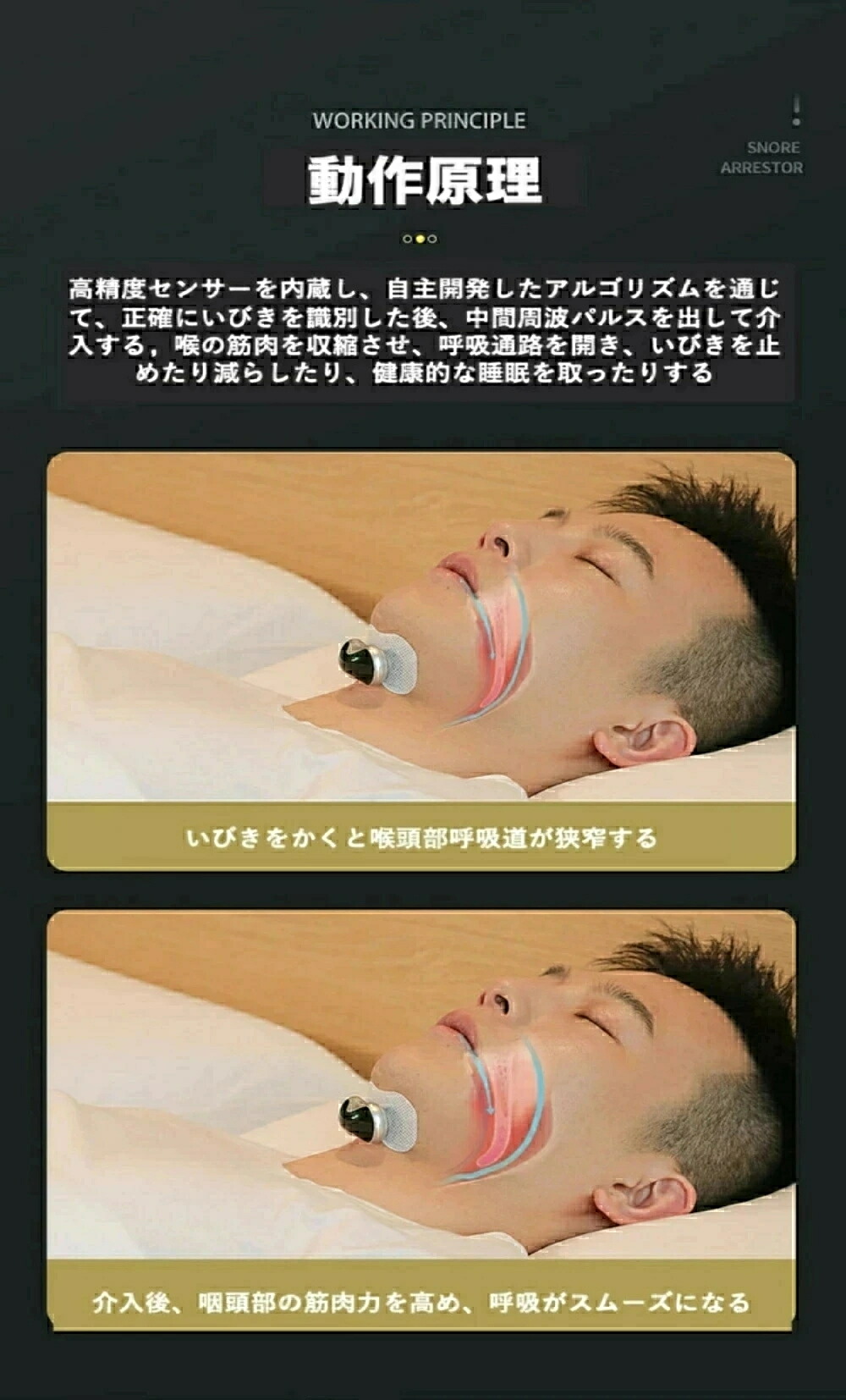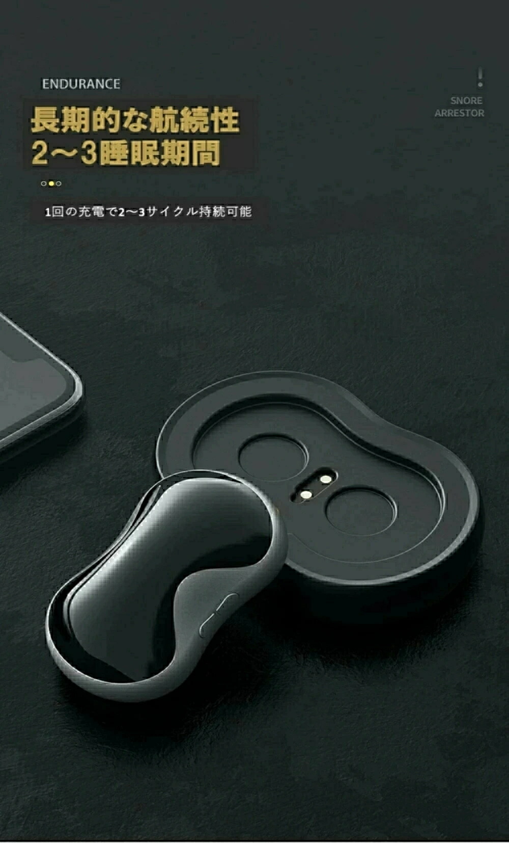 注意 ※いびきの識別と軽減を補助する機器で、睡眠障害や疾患理療、診断を目的とする医療機器ではございません。睡眠障害が疑われる場合は、専門の医師を受診してください。