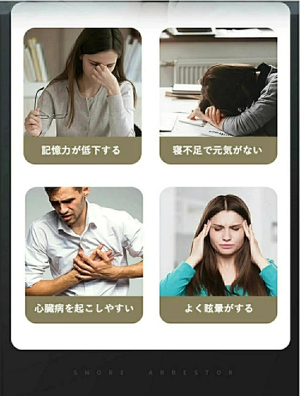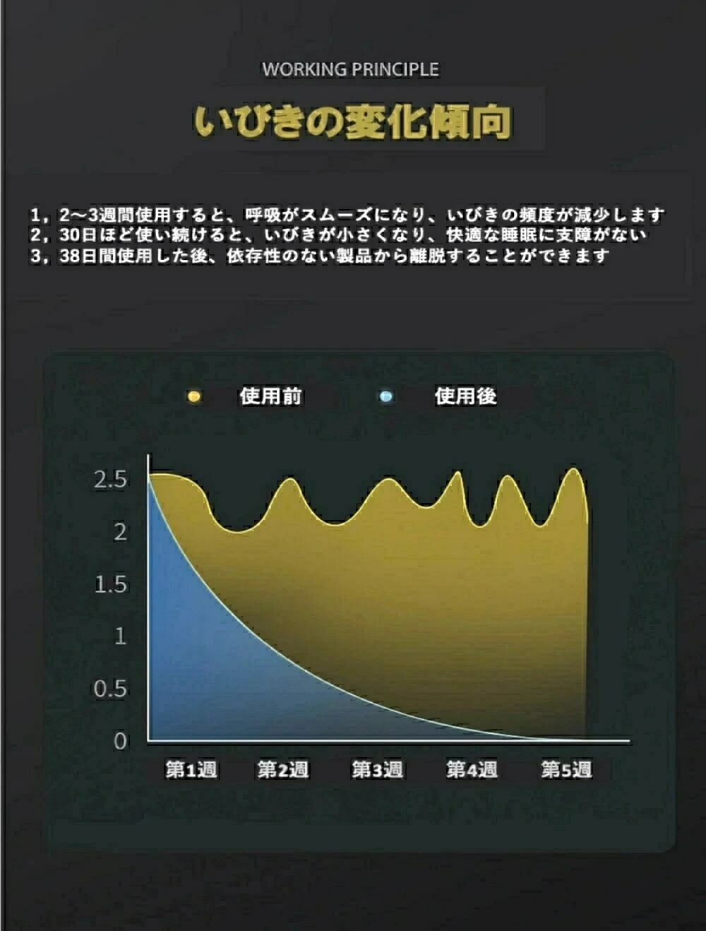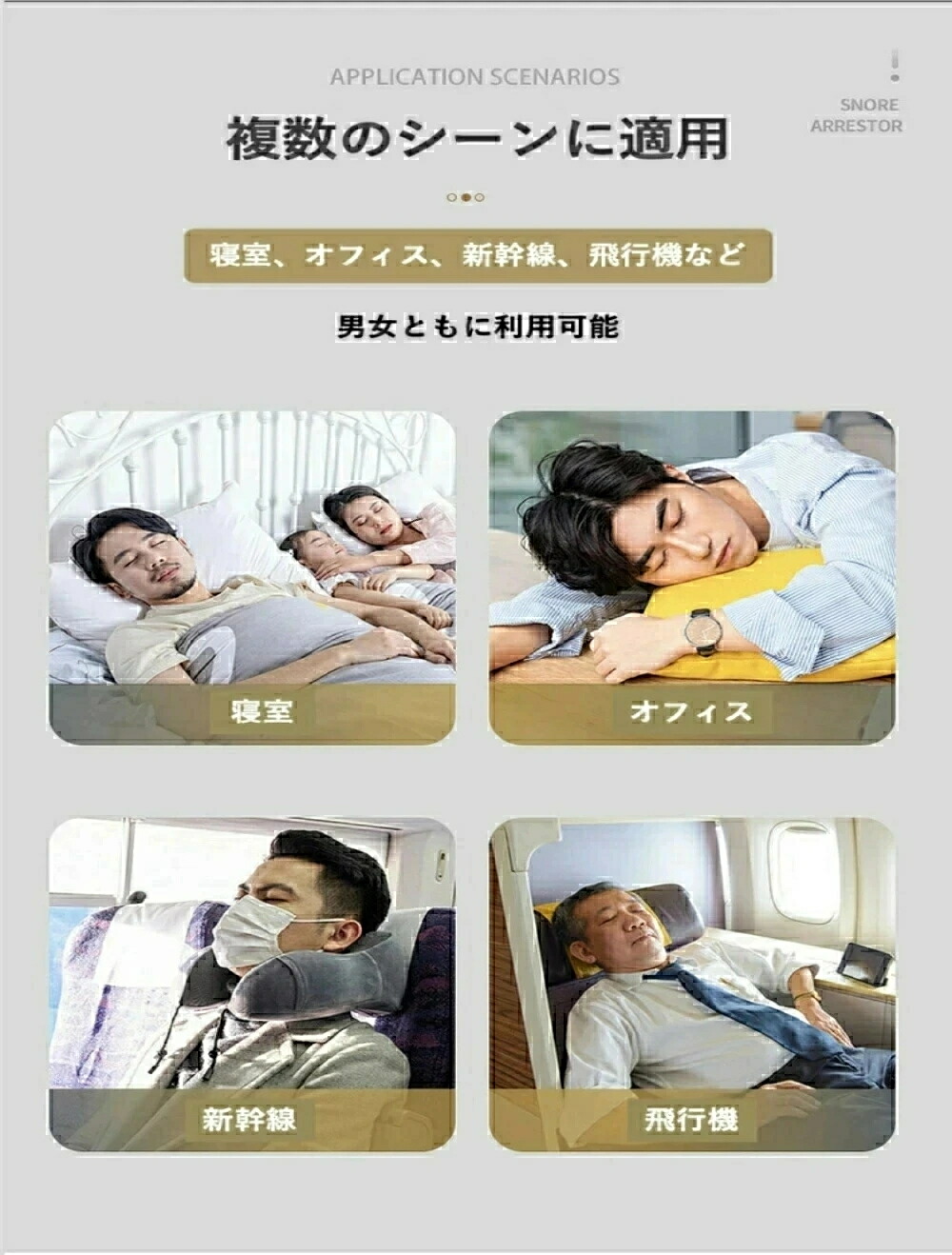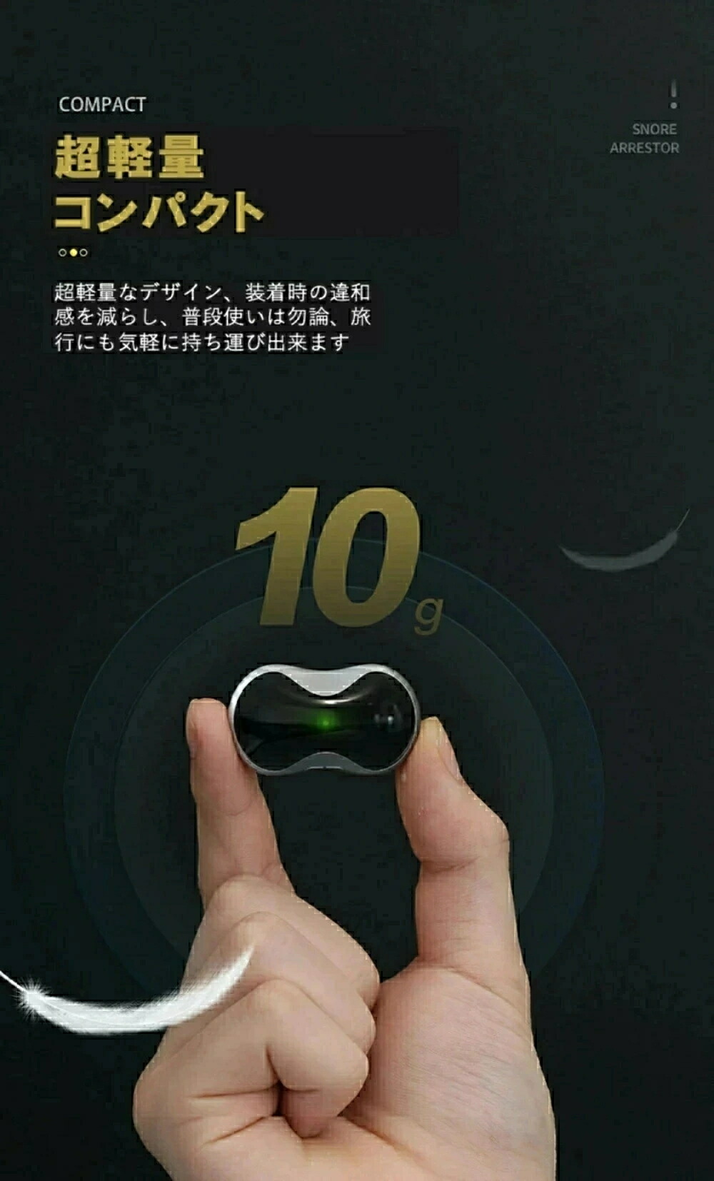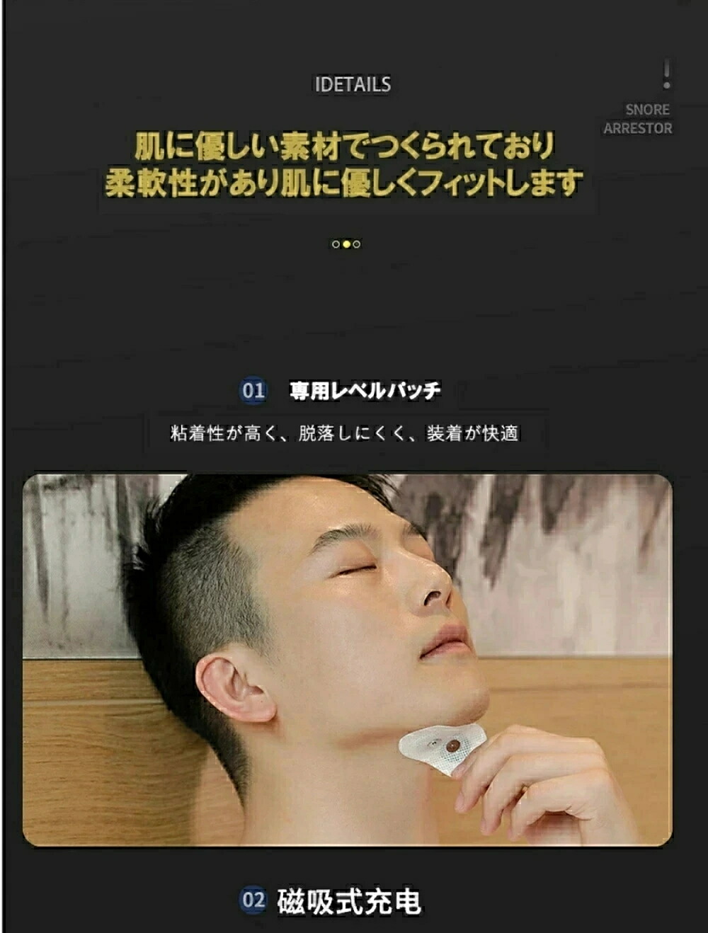 注意 ※いびきの識別と軽減を補助する機器で、睡眠障害や疾患理療、診断を目的とする医療機器ではございません。睡眠障害が疑われる場合は、専門の医師を受診してください。