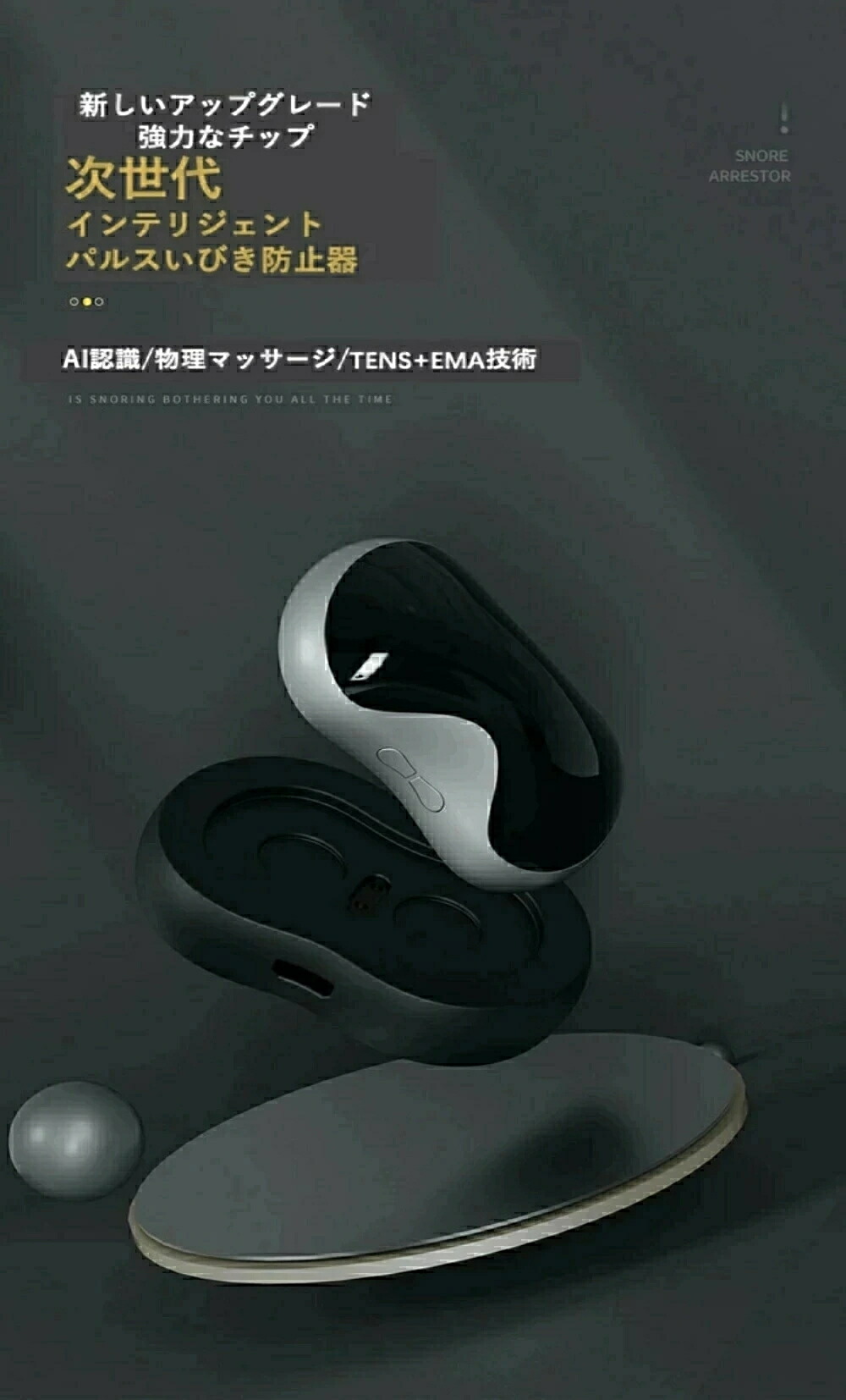 いびき防止 グッズ 無呼吸症候群 いびき対策グッズ AI 骨伝導 音声認識 特許技術 電極パッド10枚付き いびき 止める いびき防止グッズ 呼吸レス 改善 快眠 アプリ いびきグッズ 鼾 健 充電式