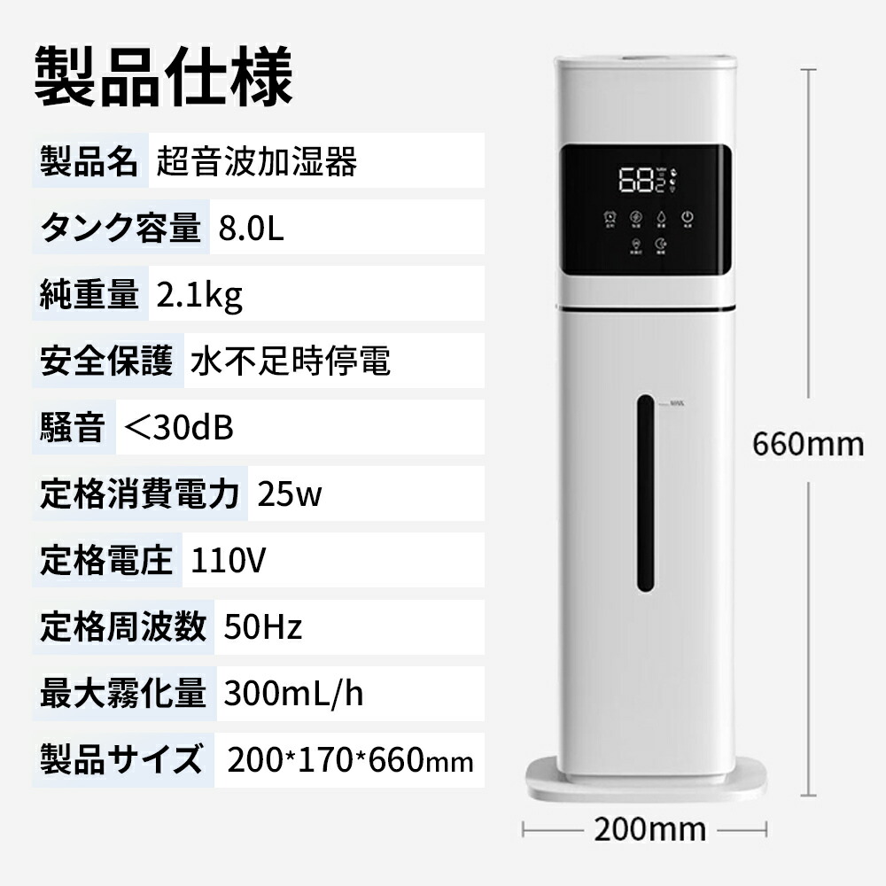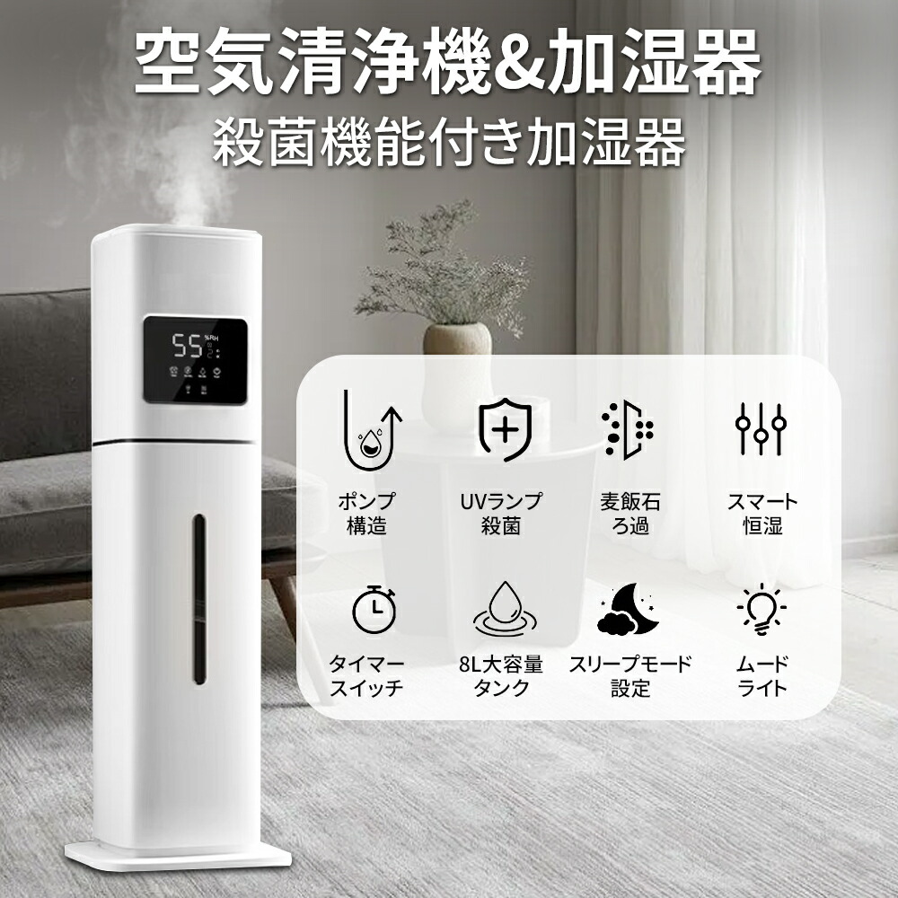 加湿器 超音波式 uv除菌 8L 大容