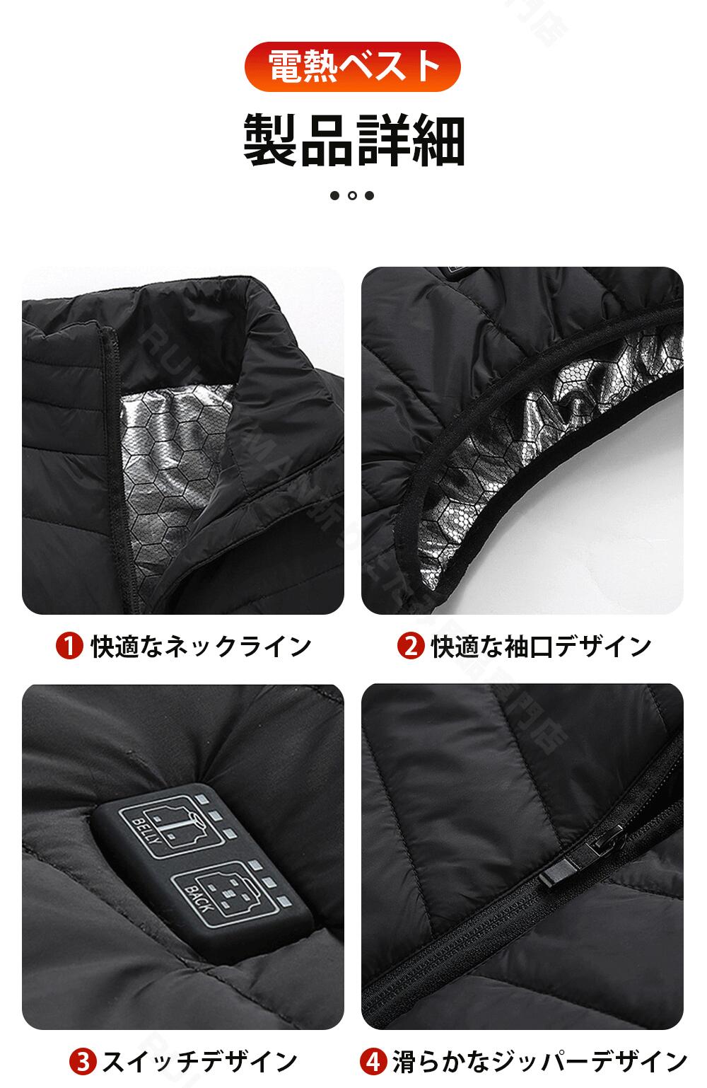 電熱ベスト ヒートジャケット バイクウェア 加熱パネル11枚 温度調節可能 加熱ベスト ヒーター ヒーターベスト USB充電式 電熱ジャケット ベスト 中綿 速暖 洗える 電熱ウェア L XL X M