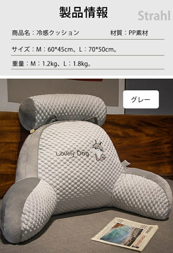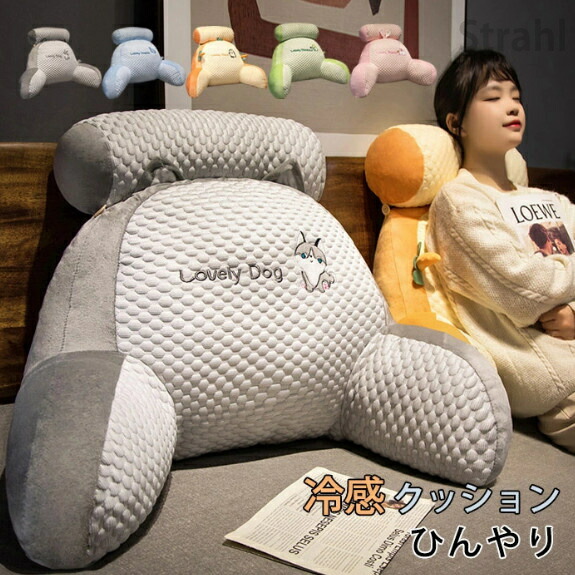 背もたれ クッション 涼感 アイスシル グリーン オレンジ ピンク ブルー グレー M L