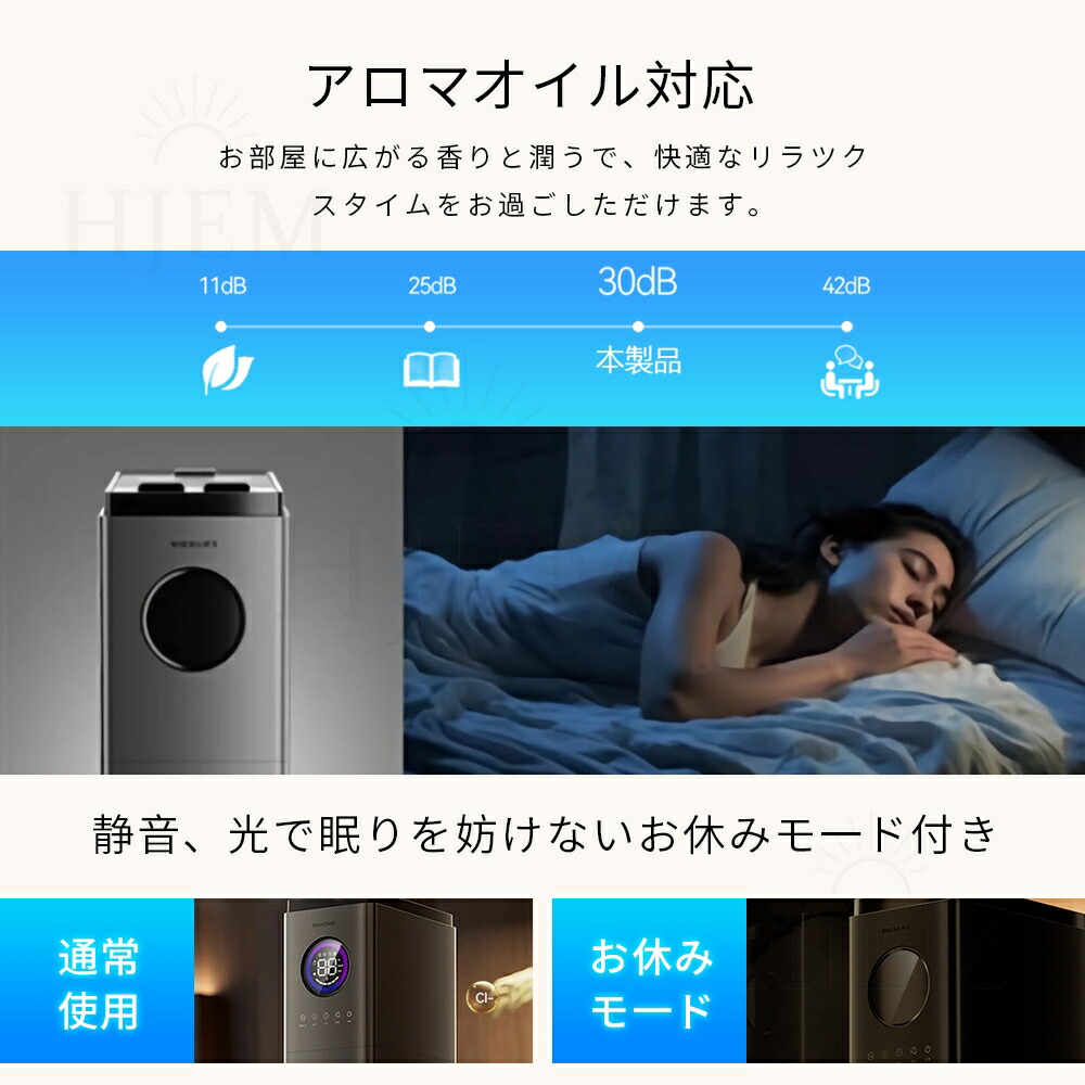切タイマー機能 & 自己清潔: 12時間の切タイマーが付き、1時間を単位に12時間までが設定できます。就寝や外出の際、切タイマーを設定すると、安心に使用いただけます。また、おやすみモードを使うと、表示パネルが消灯したままで運転しますので、光が気になって眠れない方にもぐっすり眠ることができます。さらにUVライト水を浄化できるので、噴出されるミストが清潔になります。赤ちゃん、高齢な方や女性の方に潤いケアに最適です。