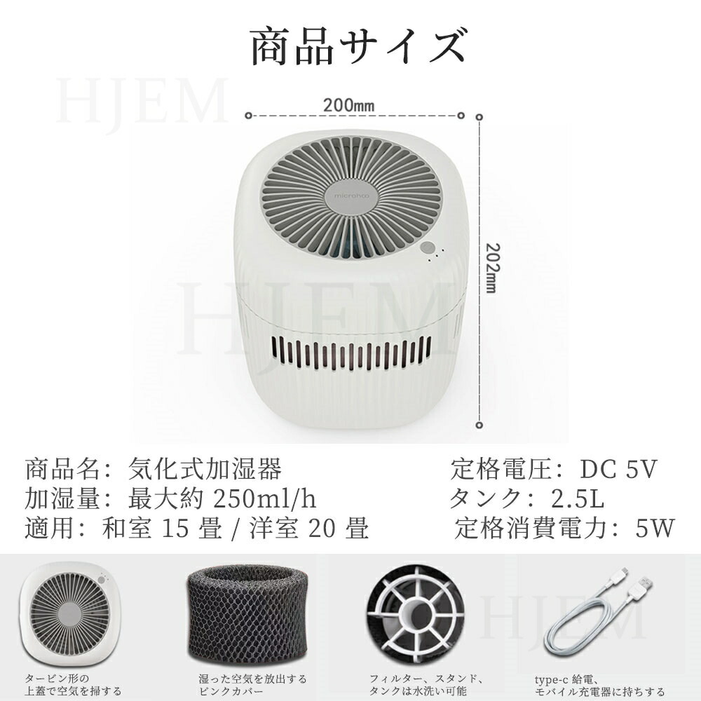 加湿器 卓上 2.5L大容量 気化式加 なし(本体に1個付属) フィルター*1追加 フィルター*2追加