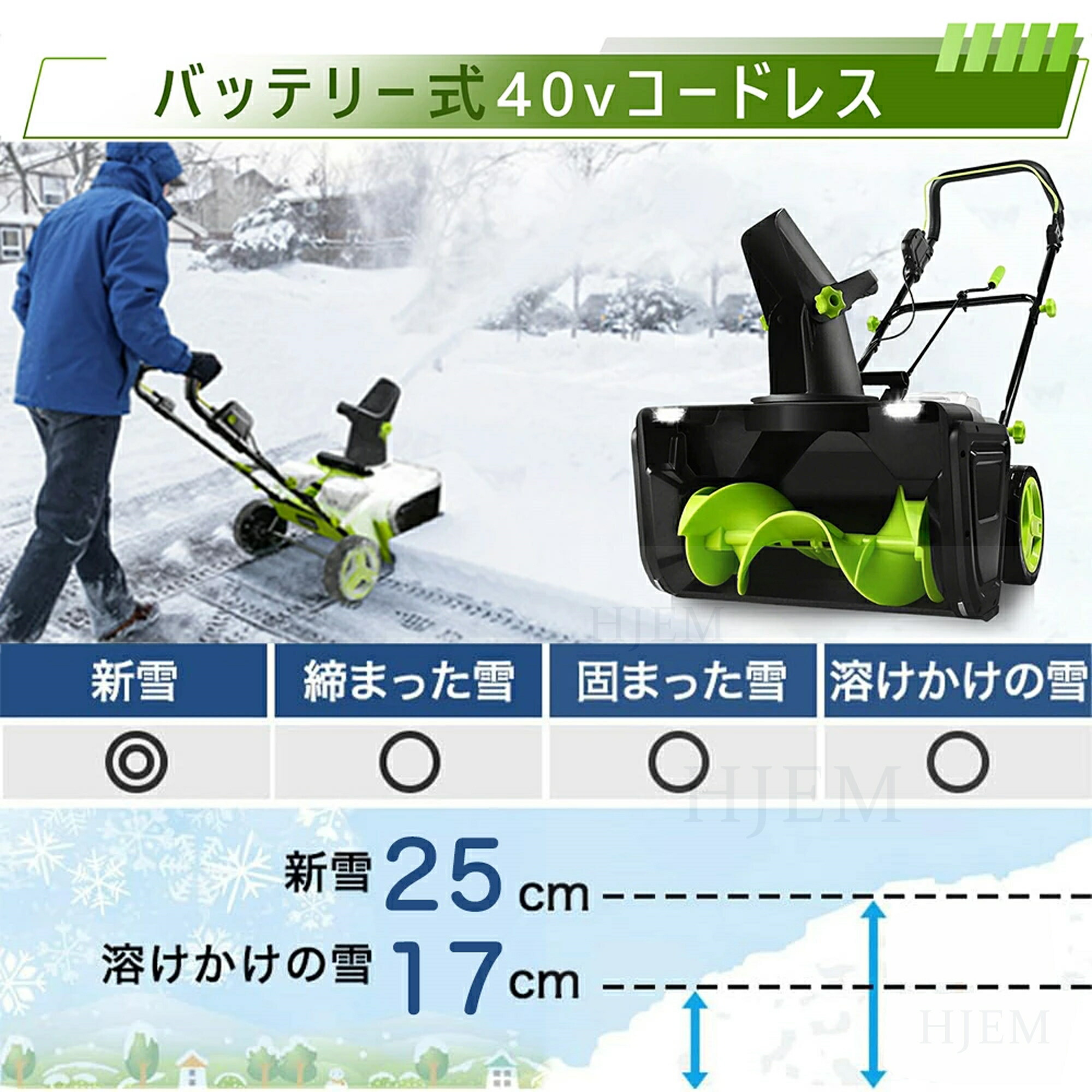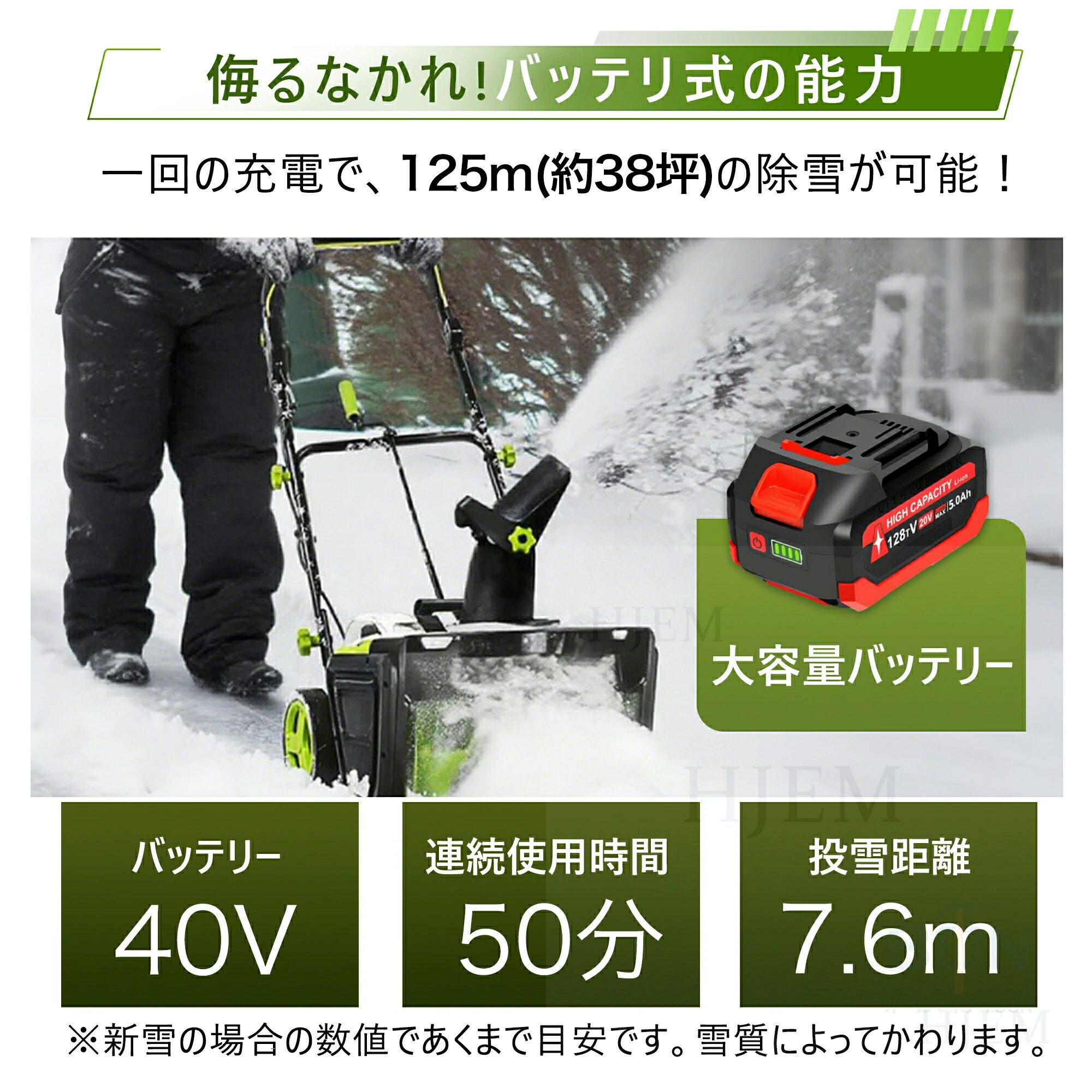 【大容量リチウムバッテリー & 高性能この電動除雪機】