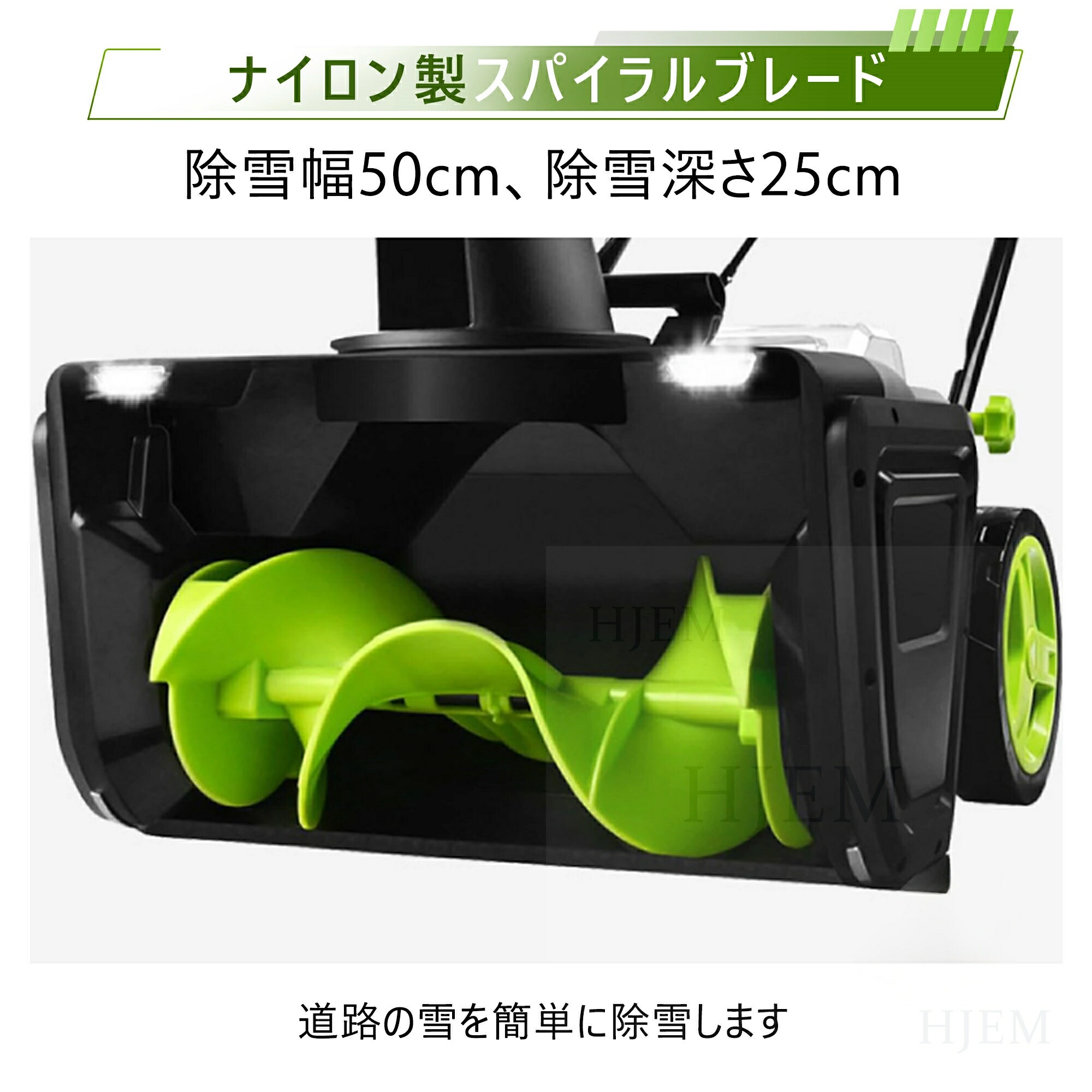 この電動除雪機は、50cmの除雪幅と25cmの除雪深さで、大部分の積雪を効率的に取り除くことができます。家庭用に最適な除雪機として、道路や車道、小規模な商業施設、学校、住宅地など、あらゆる環境に対応します。従来の手動スコップや除雪スコップ 電動と比較して、電動除雪機 スコップは作業効率を大幅に向上させ、時間と労力を節約できます。電動除雪機を使用することで、広範囲の除雪作業も簡単にこなせます。