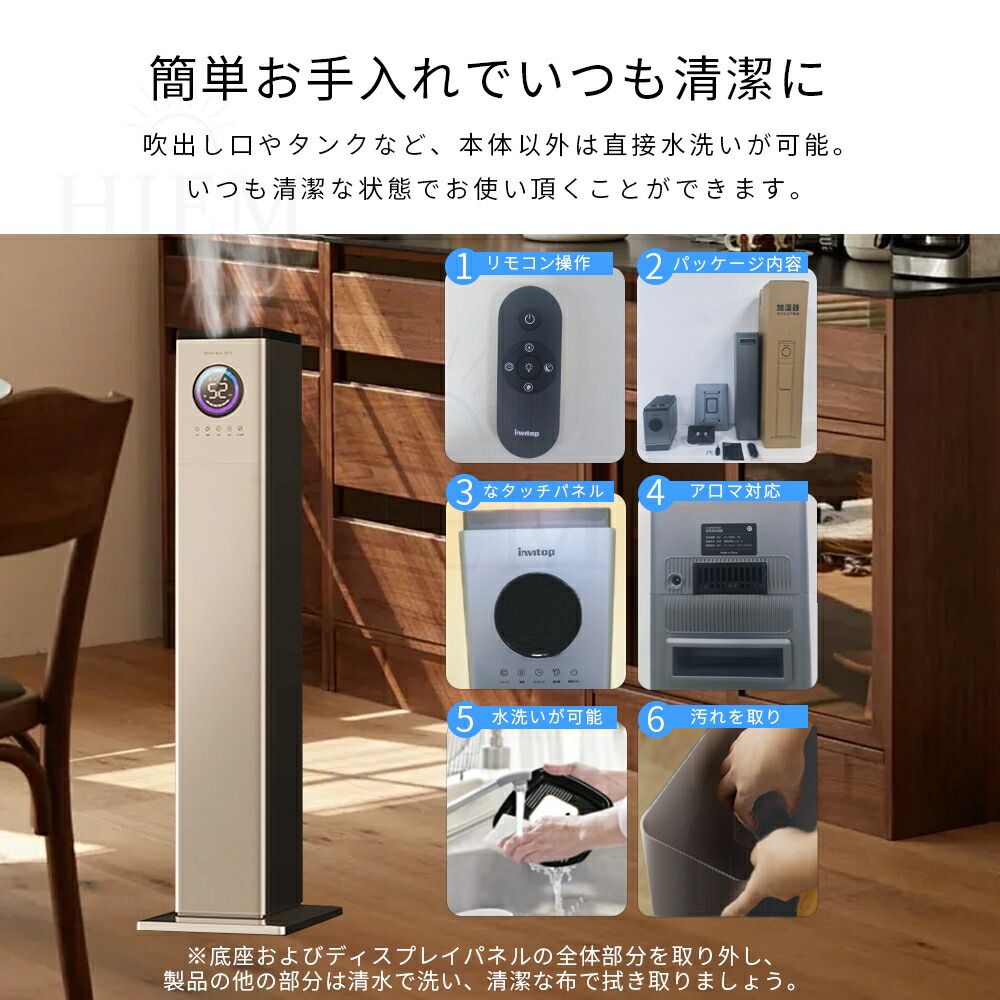 本大容量加湿器は寝室、リビングはもちろん、保育園、オフィス、ビニールハウスなど広いスペースの乾燥対策に活躍します。最大60時間の連続加湿ができ、赤ちゃんやペットなどに潤くて快適な空間を作りましょう。直感的なLEDタッチパネルと遠隔操作できるリモコンの2通りの操作でき、使いやすいです。