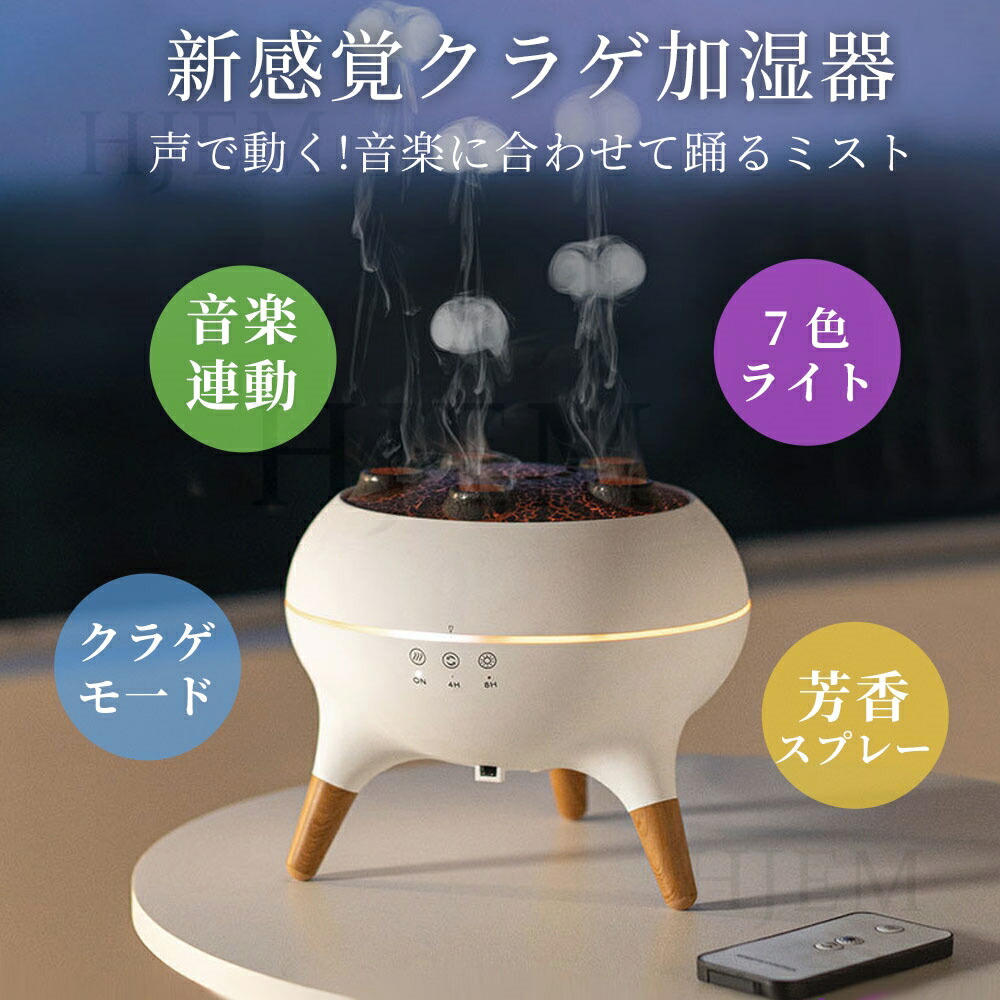 アロマディフューザー 加湿器 クラゲ 超音波式 アロマ超音波加湿器 音声操作 クラゲモード 7色LED リモコン 大容量 静音 小型 乾燥対策 コンパクト 寝室 おしゃれ ギフトに 自動オフ オフィス