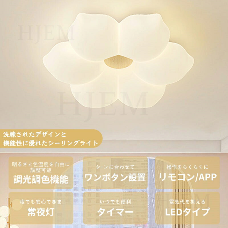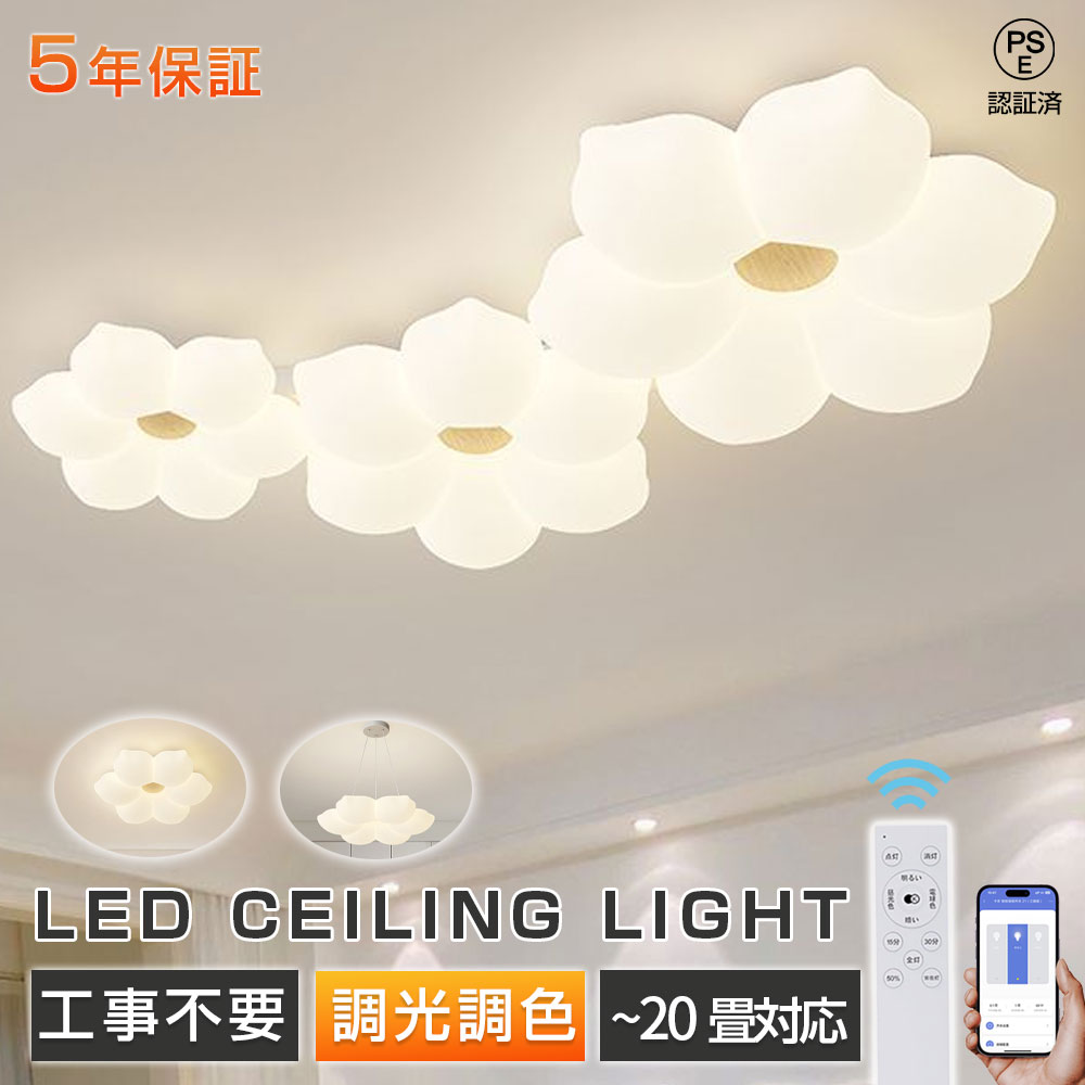 シーリングライト LED おしゃれ お花 可愛い リビング 寝室 子供部屋 北欧 田園 民宿 6畳8畳10畳12畳14畳 調光調色 リモコン付き 電気 照明 天井照明 スマホ インテリア照明 癒し風