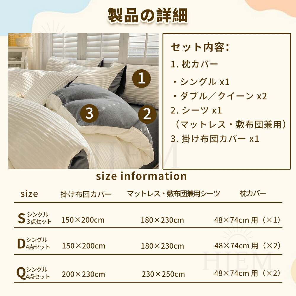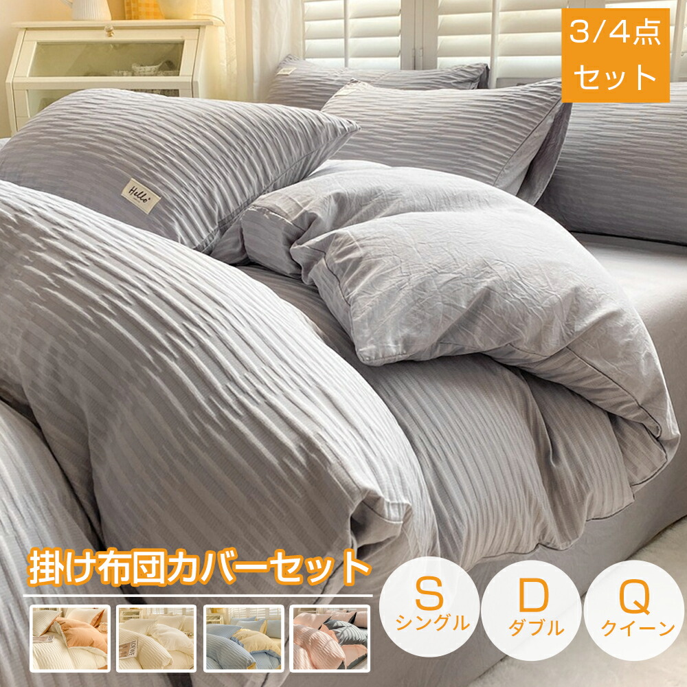 布団カバー 掛け布団カバー ストライプ インテリア 寝具 収納 人気 S D Q ホワイト&グレー ピンク&グレー ブルー&イエロー ホワイト&オレンジ ホワイト グレー