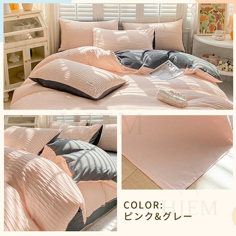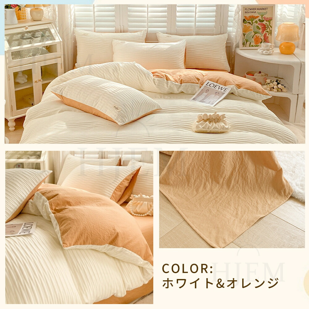 布団カバー 掛け布団カバー ストライプ 寝具 寝具カバー シーツ 寝具カバーセット 通販 S D Q ホワイト&グレー ピンク&グレー ブルー&イエロー ホワイト&オレンジ ホワイト グレー