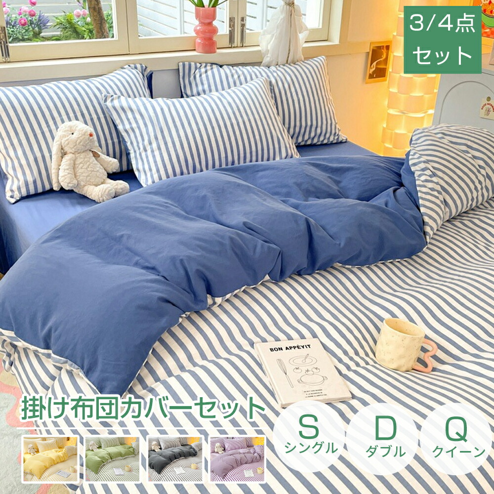 布団カバー 掛け布団カバー ストライプ インテリア 寝具 収納 人気 S D Q グリーン グレー イエロー ブルー パープル ピンク