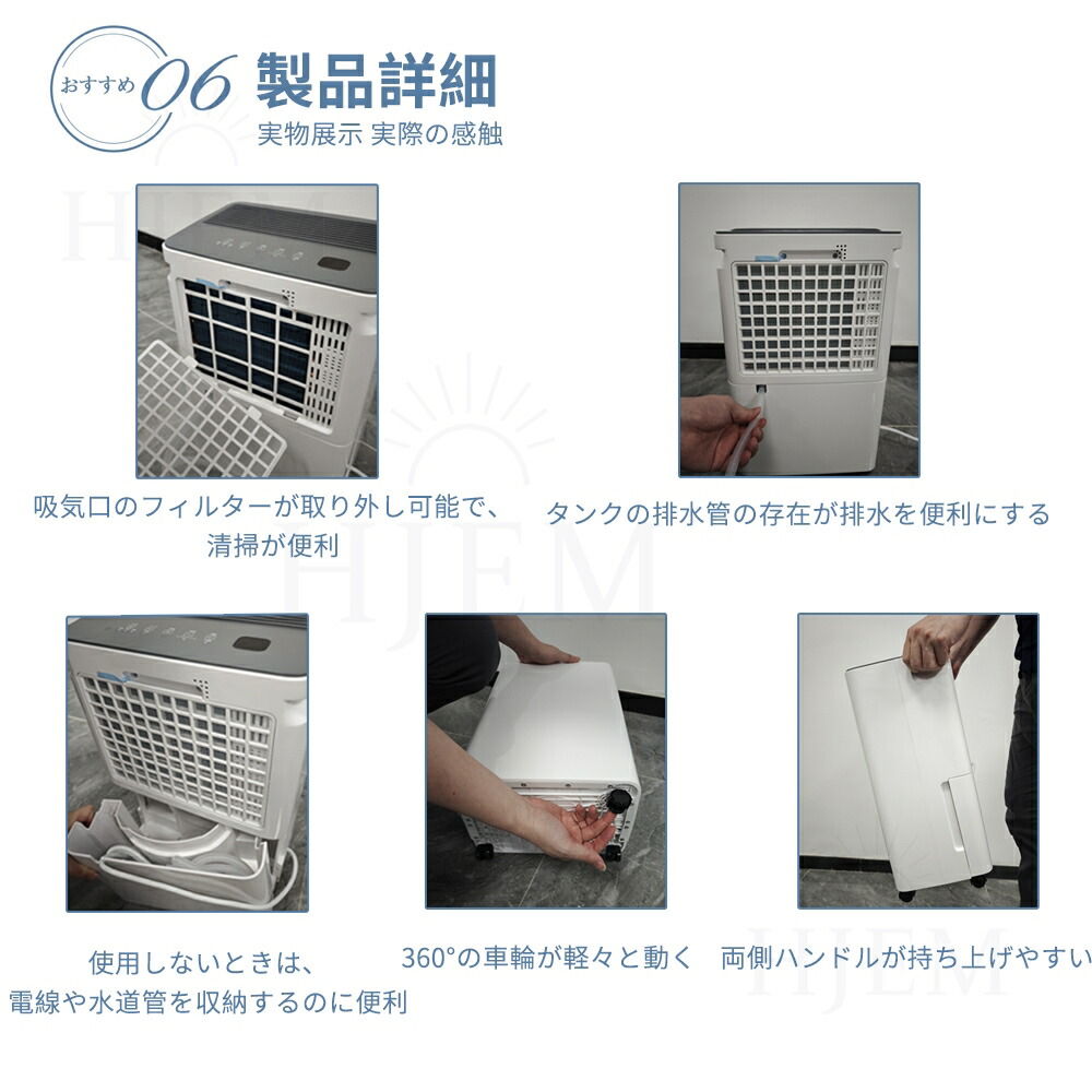 じょしつき 部屋 小型が室内の湿った空気を吸い込んで、コンプレッサー式用いて湿気を取り除きます。除湿力最大約12000ML/日です(※室温30℃、相対湿度80%を維持し続ける環境条件でテスト)。室温・室湿が高くなるほど除湿力が高くなるので、高温多湿な季節に、狭いスペースの湿気・カビ対策として、このじょしつきが最適。