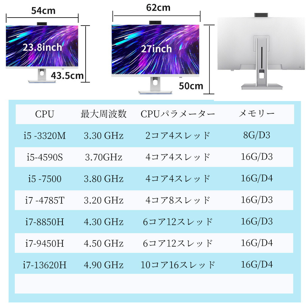 新品 デスクトップパソコン offic 23.8inch 27.0inch i5-3320M【8G+128GB】 i5-3320M【8G+256GB】 i5-4590S【16G+256GB】 i5-4590S【16G+512GB】 i5-7500【16G+512GB】 i7-4785T【16G+256GB】 i7-4785T【16G+512GB】 i7-9750H【16G+512GB】 i7-9750H【16G+1TB】 i7-13620H【16G+1TB】
