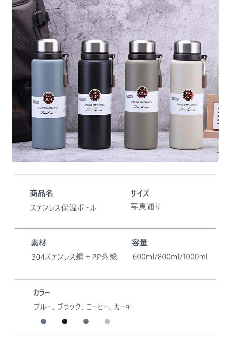 水筒 1l 1リットル 保温 保冷 大 キッチン用品 食器 調理器具 人気 ブルー カーキ コーヒー ブラック 600ML 800ML