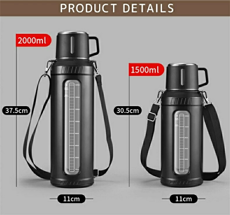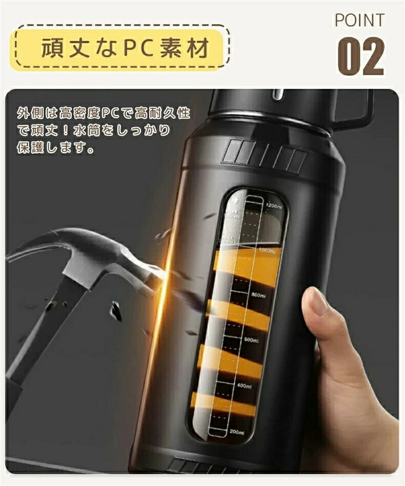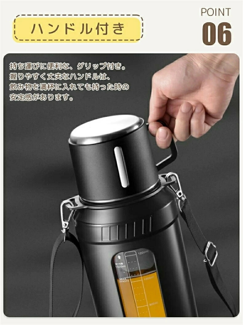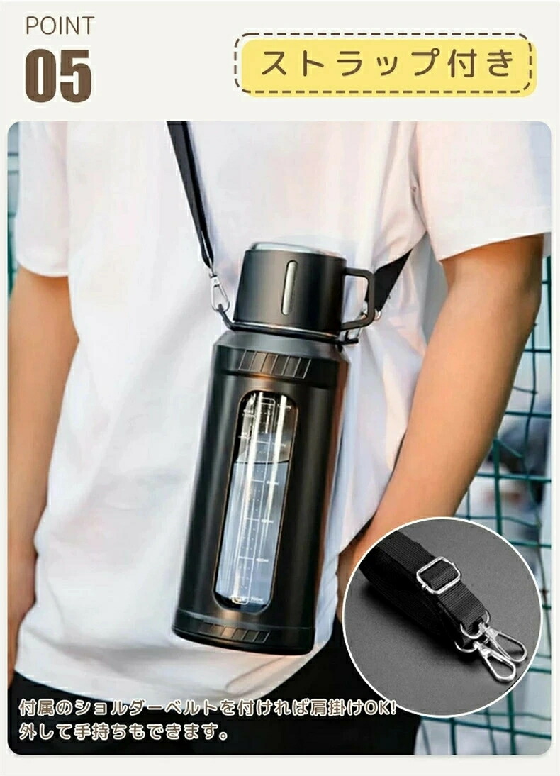 マグボトル 水筒 ワンタッチ 茶こし コップ付き 取っ手 ハンドル 大容量 目盛り 直飲み 軽量 肩掛け 透明 蓋付き タンブラー おしゃれ シンプル オフィス キャンプ 登山 スポーツ アウトドア
