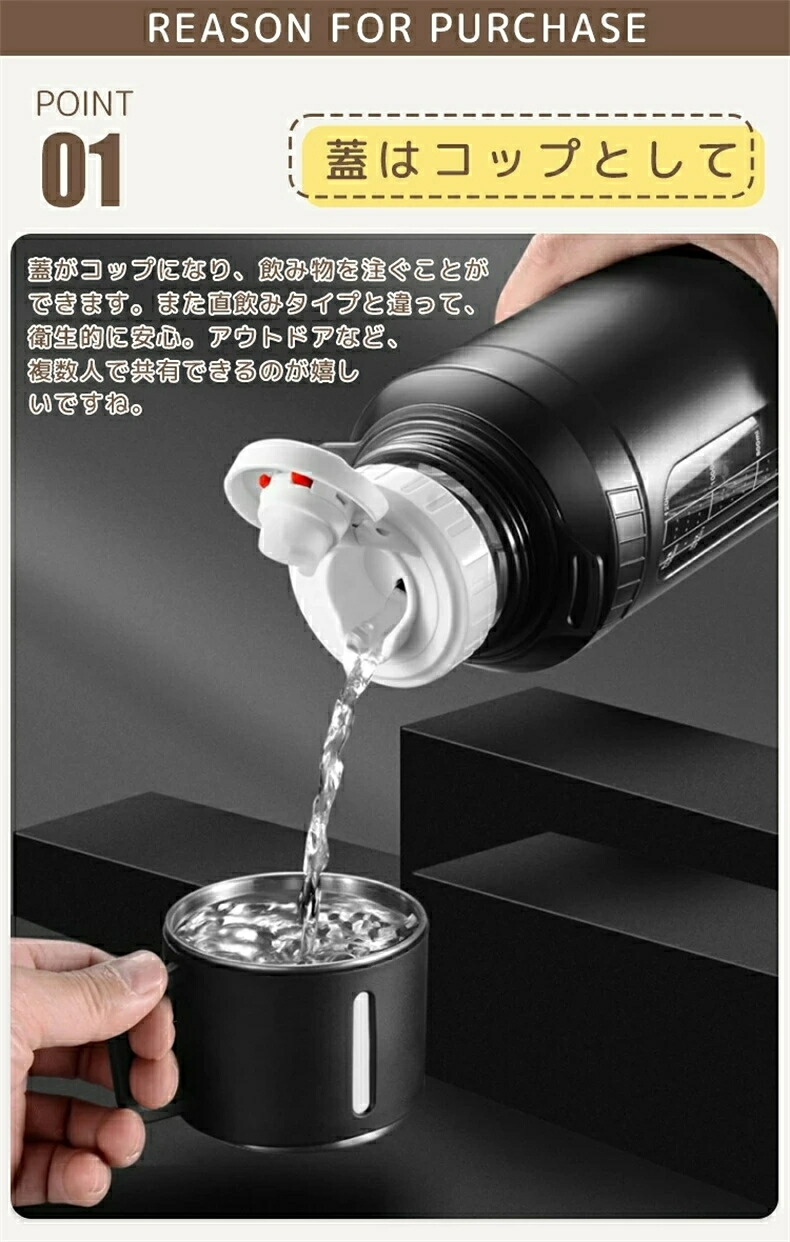 ◆ 蓋がコップになり、飲み物を注ぐことができます。衛生的に安心できます。