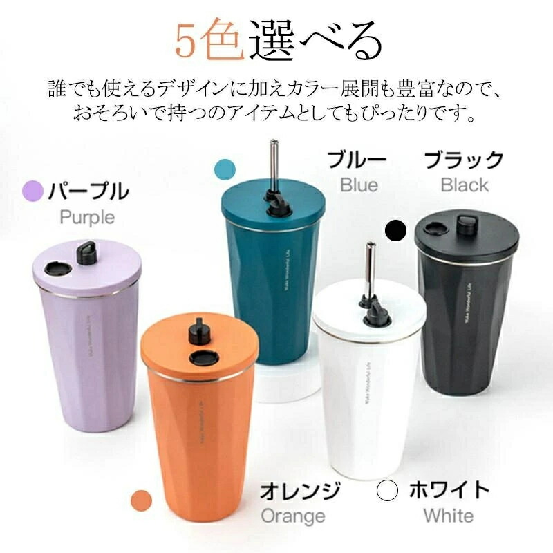 タンブラー 水筒 ストロー付き 600 弁当箱 水筒 水筒 マグボトル 人気 ホワイト オレンジ ブラック ブルー パープル