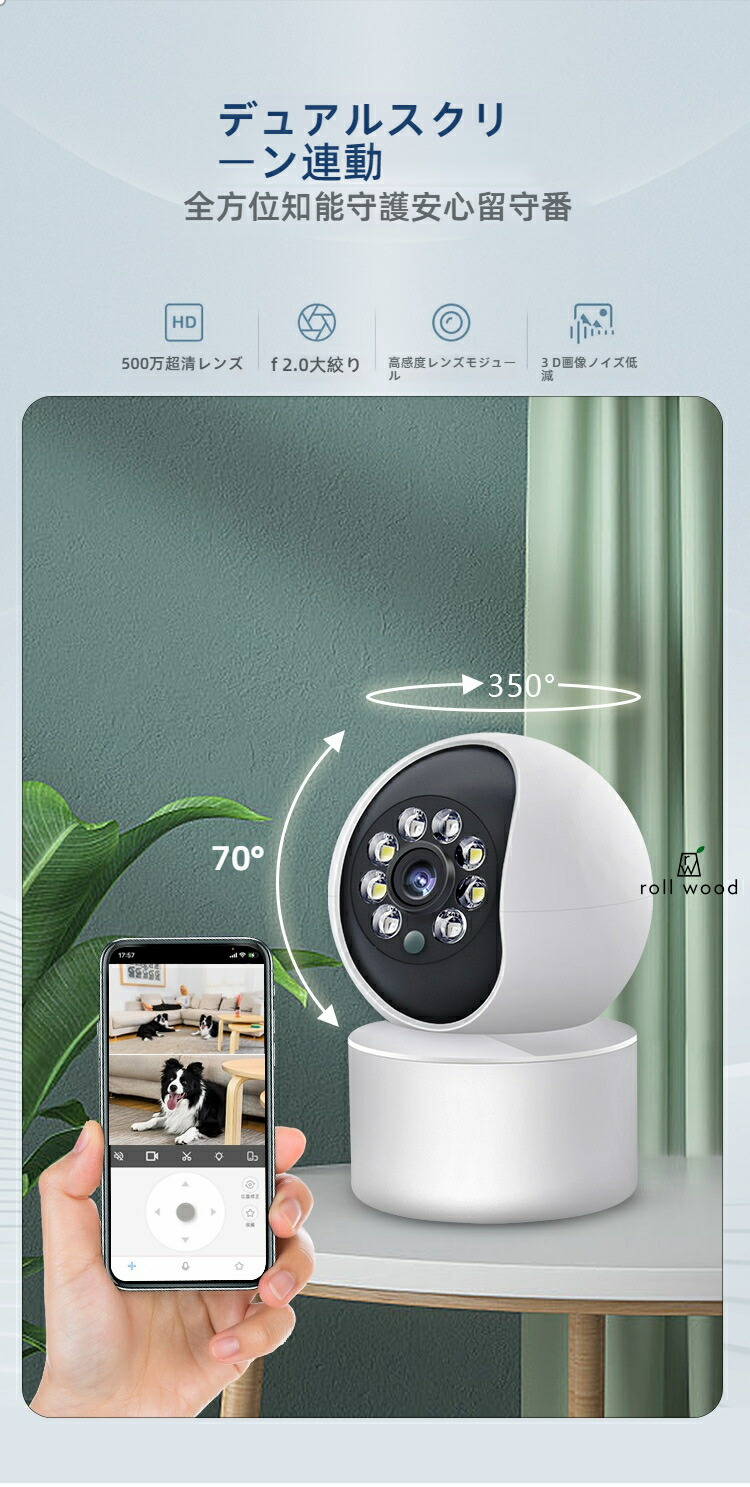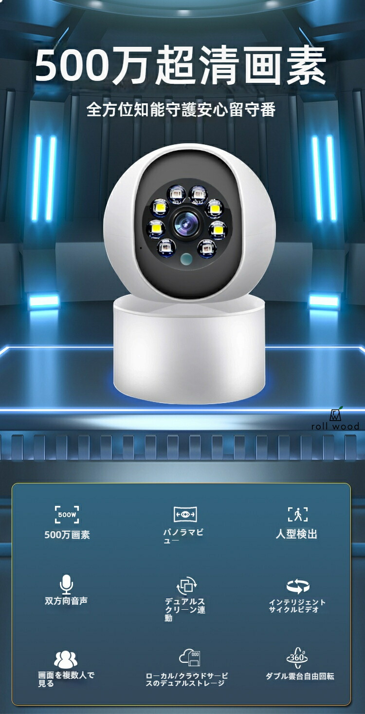 防犯カメラ 監視カメラ 屋外 家庭用 500万画素 双方向対話 ペットカメラ 見守りカメラ 日本製 工事不要 屋内 小型 SD録画 赤外線カメラ wifi