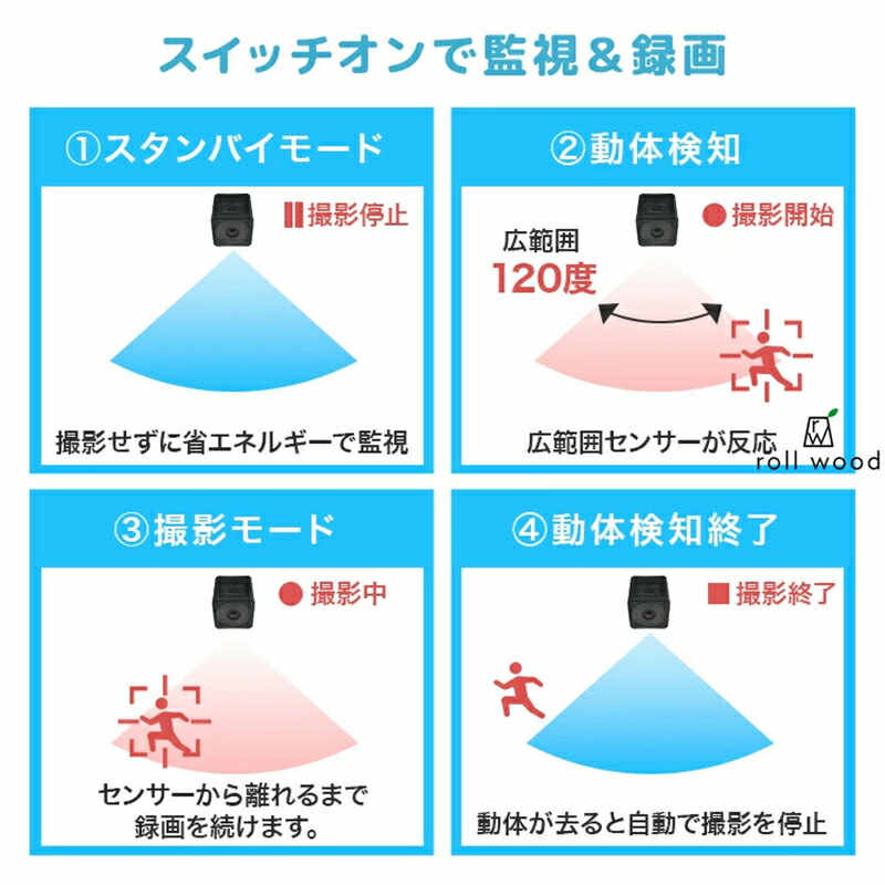 防犯カメラ 小型カメラ 小型 家庭用 屋内 屋外 監視カメラ 工事不要 長時間録画 人感センサー 人体感知 動体検知 暗視 赤外線 自動録画 ループ録画 上書き録画 車庫 簡単操作 かんたん設 駐車場