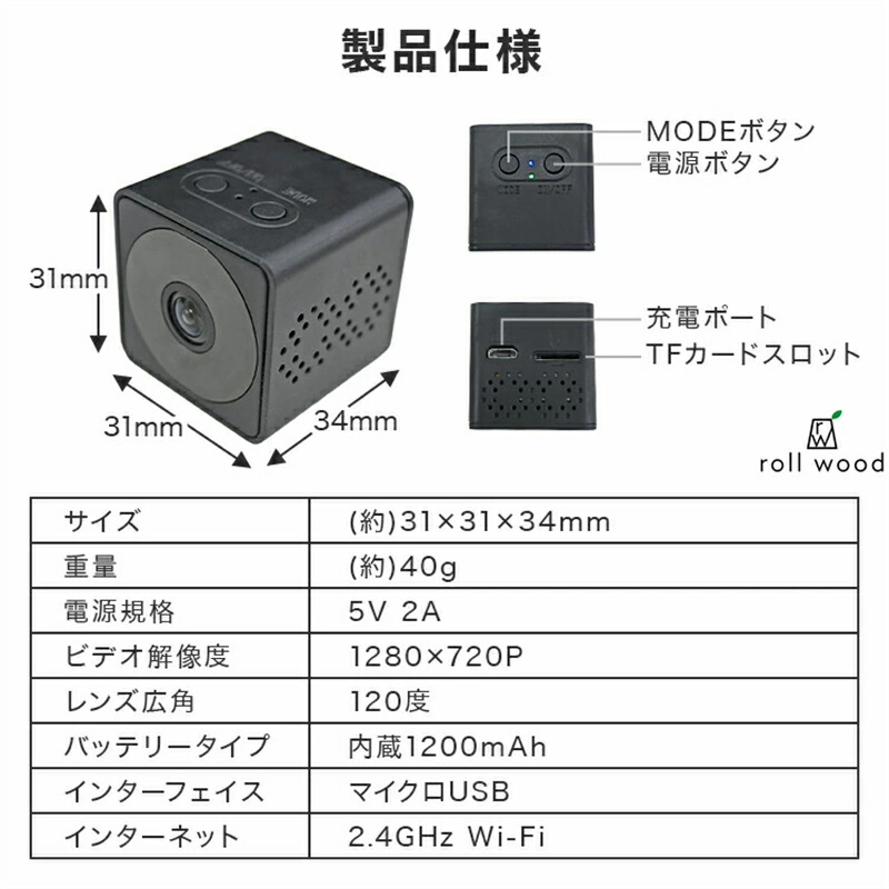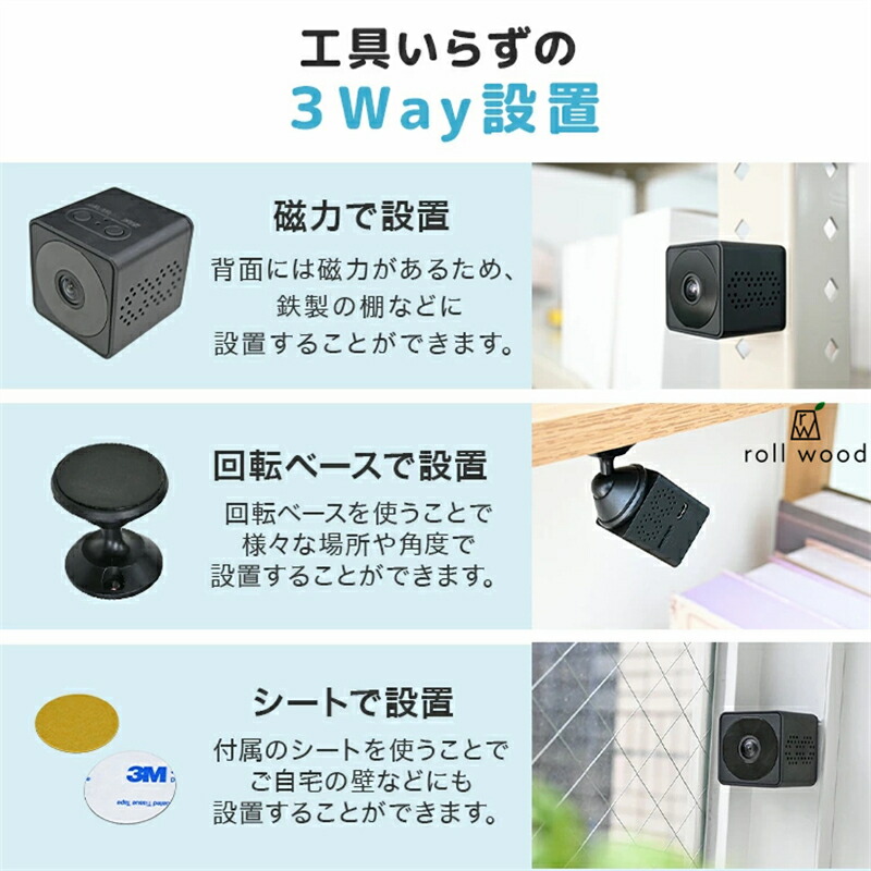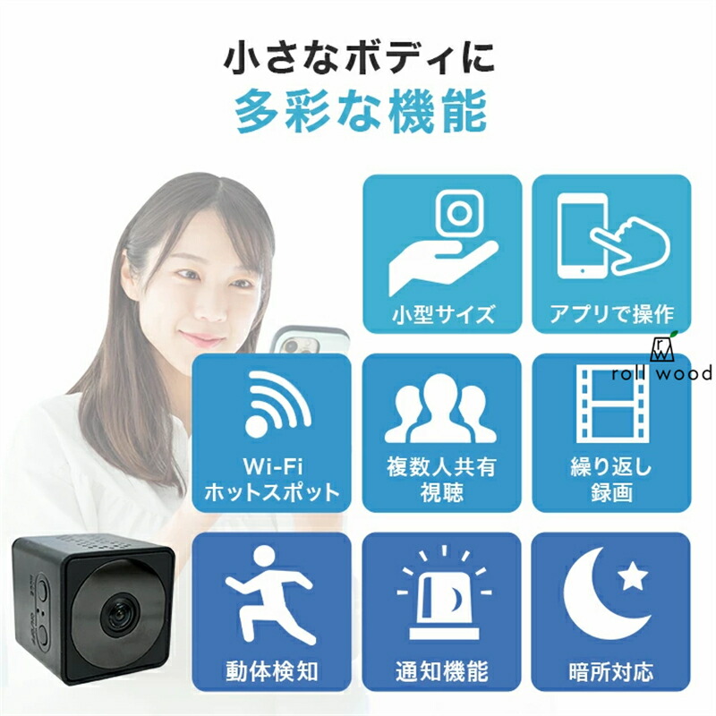 防犯カメラ 小型カメラ 小型 家庭用 屋内 屋外 監視カメラ 工事不要 長時間録画 人感センサー 人体感知 動体検知 暗視 赤外線 自動録画 ループ録画 上書き録画 駐車場 車庫 簡単操作 かんたん設置 webカメラ スマホ 遠隔 WiFi