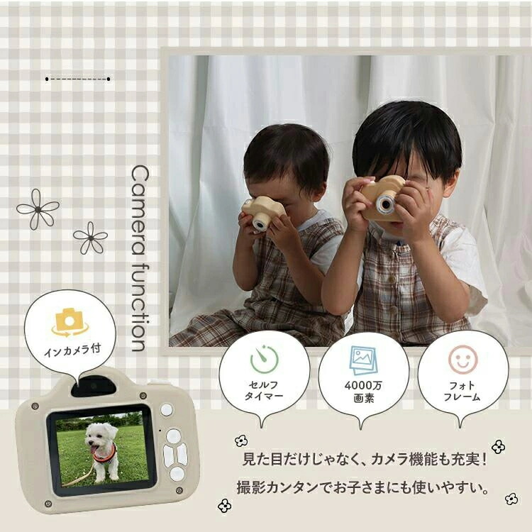 キッズカメラ トイカメラ 3歳 4歳 5歳 4000万画素 SDカード付き デジタルカメラ 写真 動画 32GB ゲーム内蔵 インカメラ 子供用 おもちゃ ままごと 誕生日プレゼント ギフト 小型