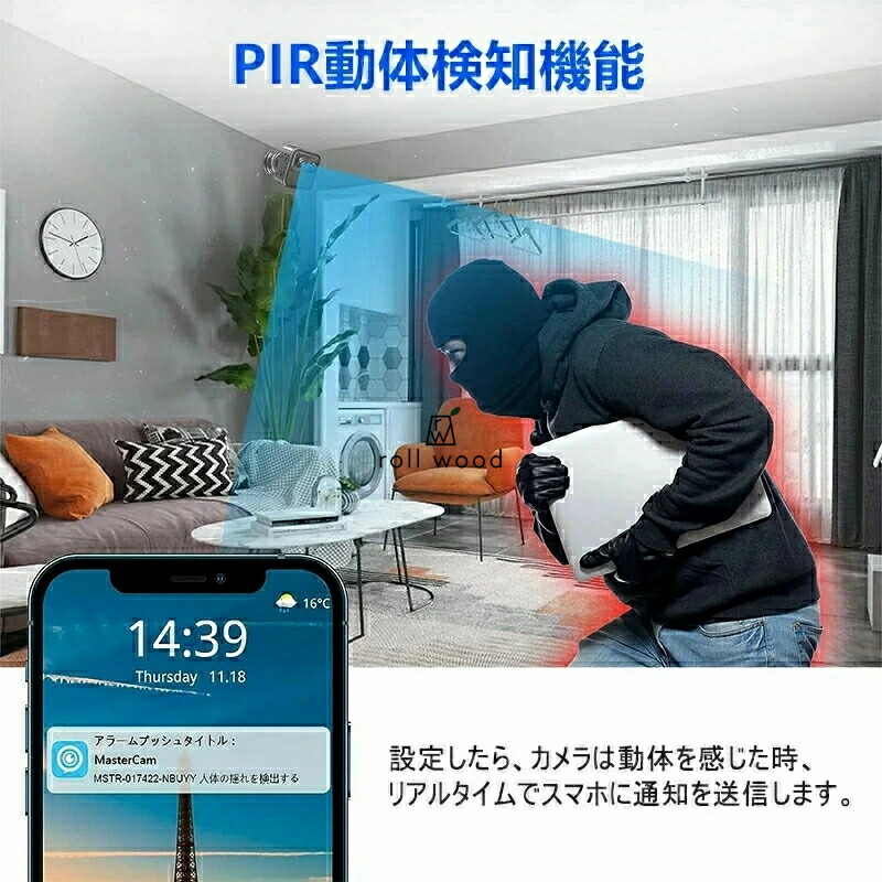 ・PIR動体検知機能(スマホに動体検知通知をプッシュ)