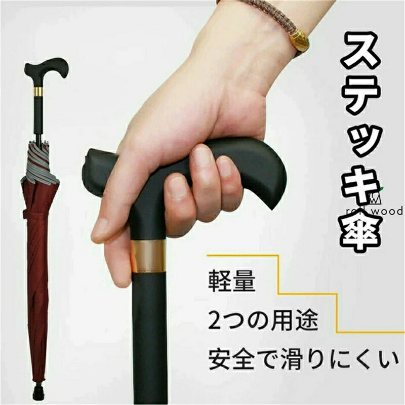 2in1 ステッキ傘|つえかさ 完全遮 傘 男女兼用雨傘 新登場! ワインレッド コーヒー 紺 ブラック ベージュ グレー