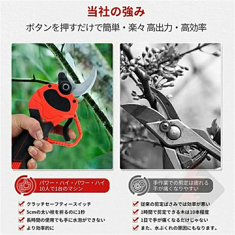 充電式剪定ばさみ コードレス 切断直径 1個 2個 延長ロッド無し 延長ロッド付き
