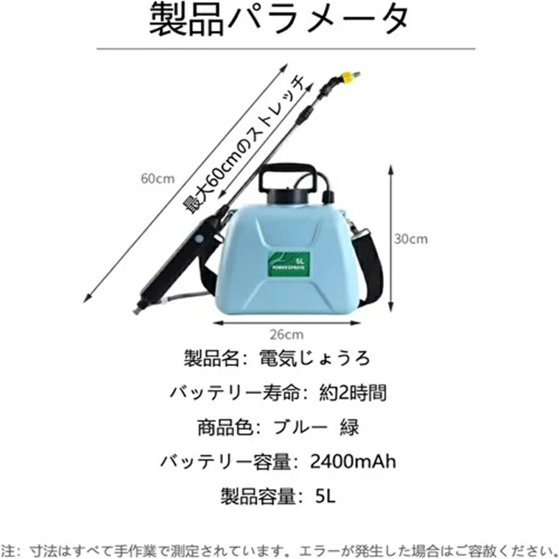 噴霧器 電動 充電式 8L 5L 2種 緑 ブルー 5L 8L(+2000円)