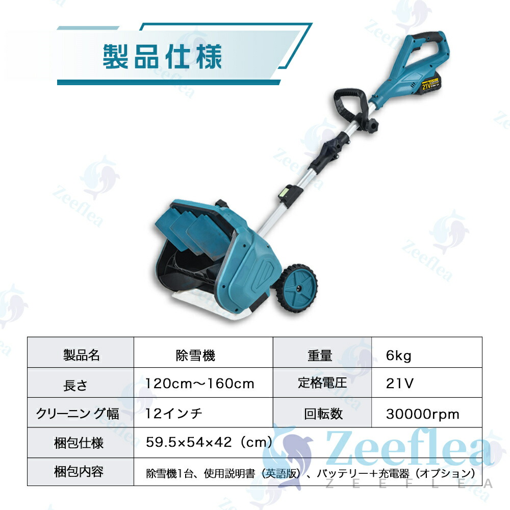 雪かき 電動 スコップ 家庭用 電動除雪機 除雪機 充電式 コードレス除雪機 3.0AH 21V バッテリー充電器 除雪幅30cm 除雪器具 ショベル 雪かき機 小型 電動除雪スコップ
