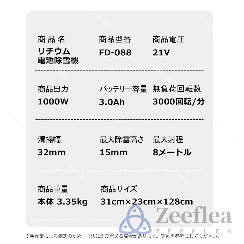 パッゲ-ジ内容:除雪機 1台、取扱説明書(英語)X1、バッテリーX1、充電器X1