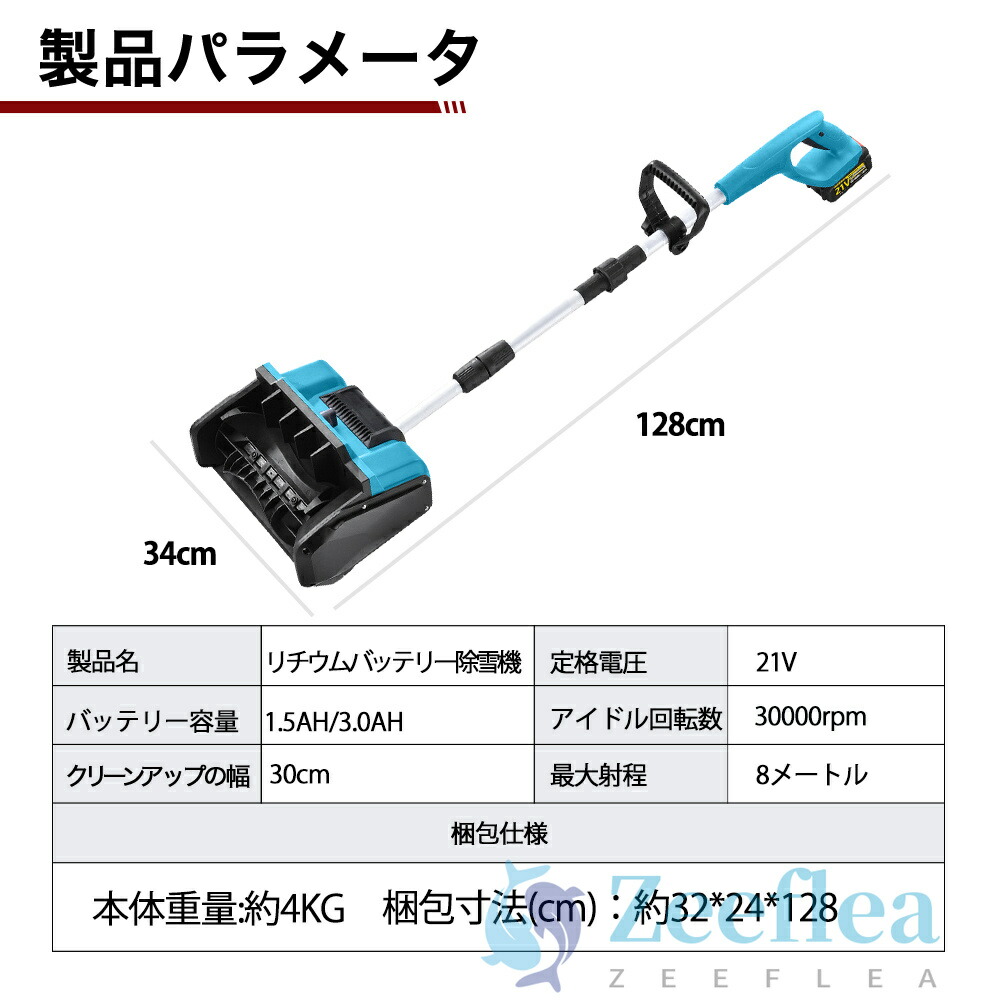 電動除雪機 除雪機 充電式 コードレス除雪機 雪かき 電動 スコップ 家庭用 除雪幅30cm 3.0AH 21V バッテリー 除雪器具 電動除雪スコップ 雪かきスコップ 小型除雪機 除雪用品 ショベル
