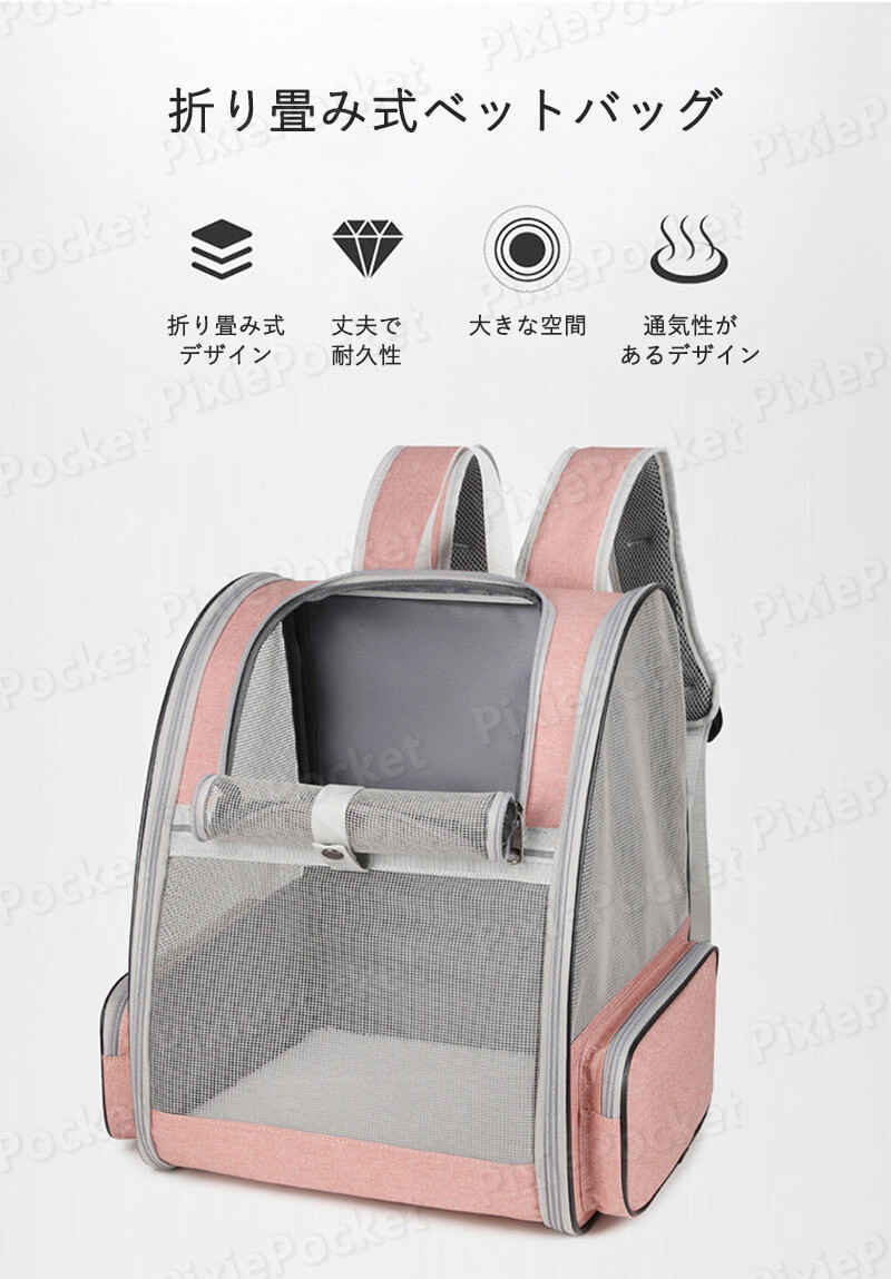 通気性ペットバックパック 犬 グッズ 犬用品 キャリーバッグ カート リュックキャリー 早い者勝ち グレー ピンク