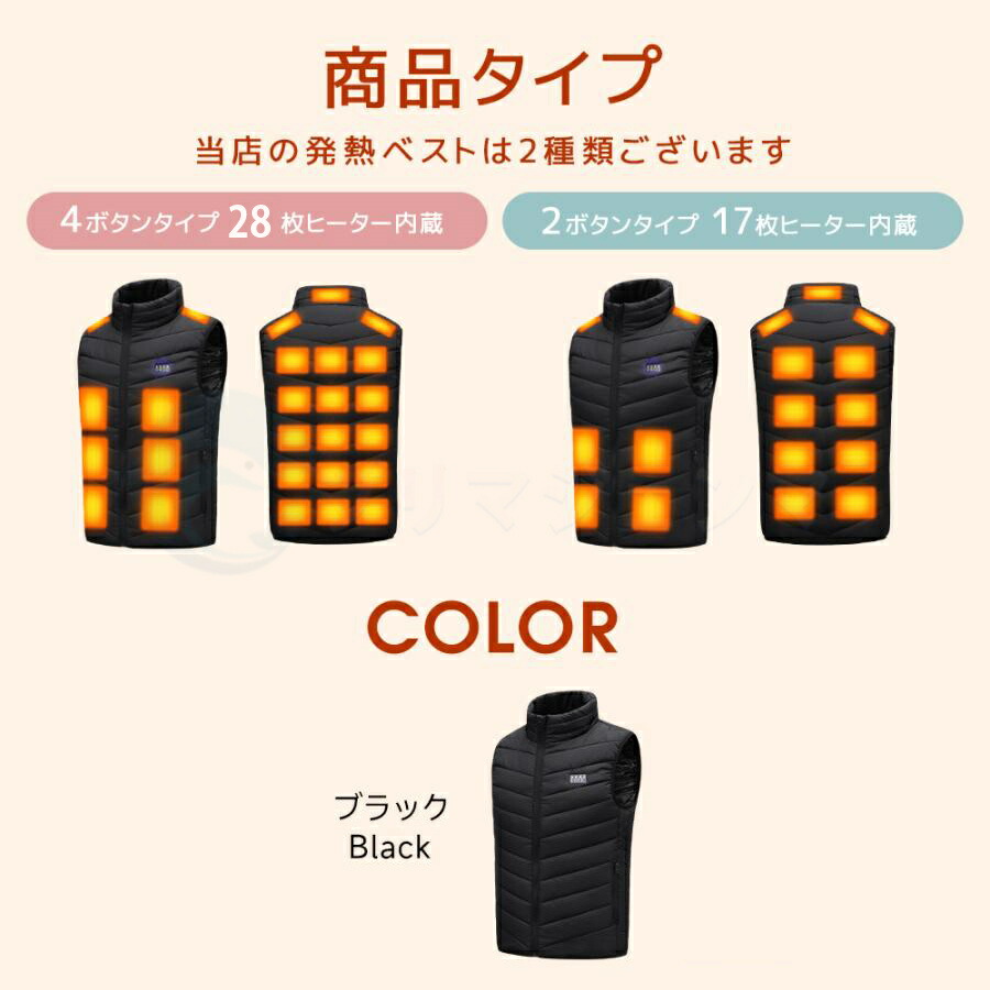 電熱ウェア 電熱ベスト ヒーターベスト メンズファッション 豊富な品揃え 4ボタン‐28枚ヒーター(2025新品) 2ボタン‐17枚ヒーター