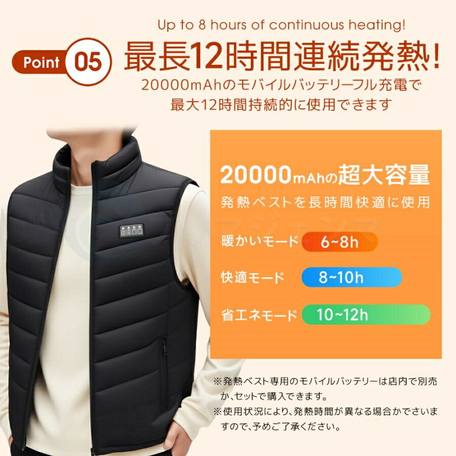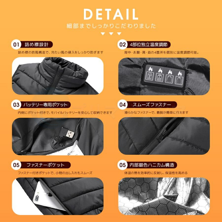 セット内容:電熱ベスト*1、日本語取扱説明書*1、20000MAHモバイルバッテリー*1(別売り)、ギフトバッグ