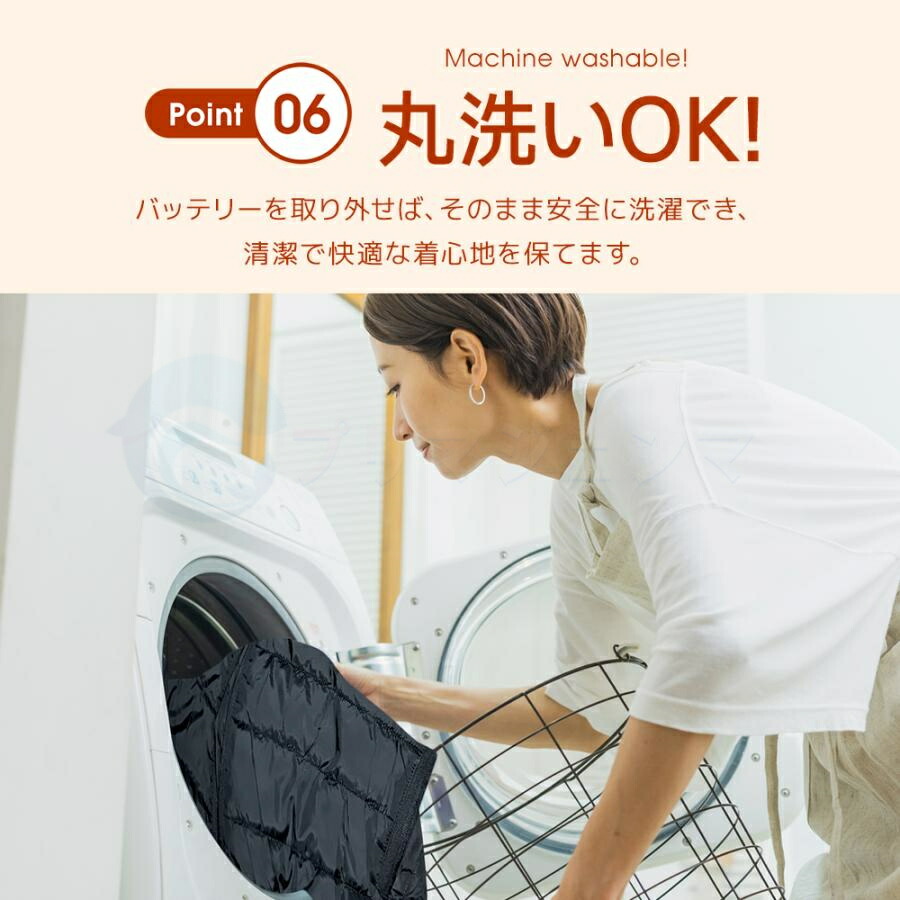 内部填充物は100%ポリエステル繊維です。良質なダウンジャケット用の原料として、軽薄で、手触りが細かくて、柔らかくて、保温が良くて、変形しにくいです。手洗いはもちろん、洗濯機でも洗えます。(御注意:洗濯機で洗う場合は、ベストの損傷を防ぐ為に洗濯ネットに入れてお洗いください。洗濯の前にモバイルバッテリーを取り外してください)