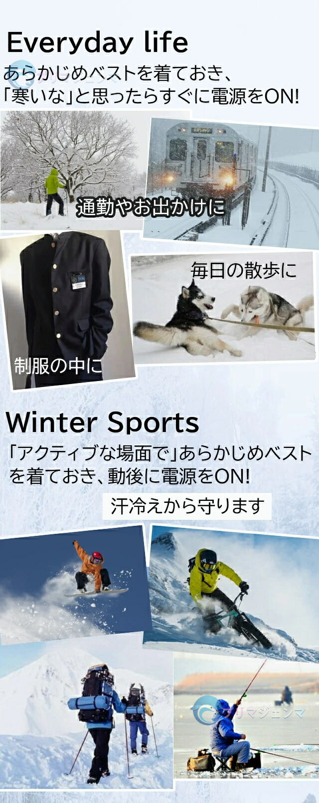 釣り、バイク、ゴルフ、スキー、登山、アウトドア、屋外作業、夜勤、小外出、通勤などの寒い日に!