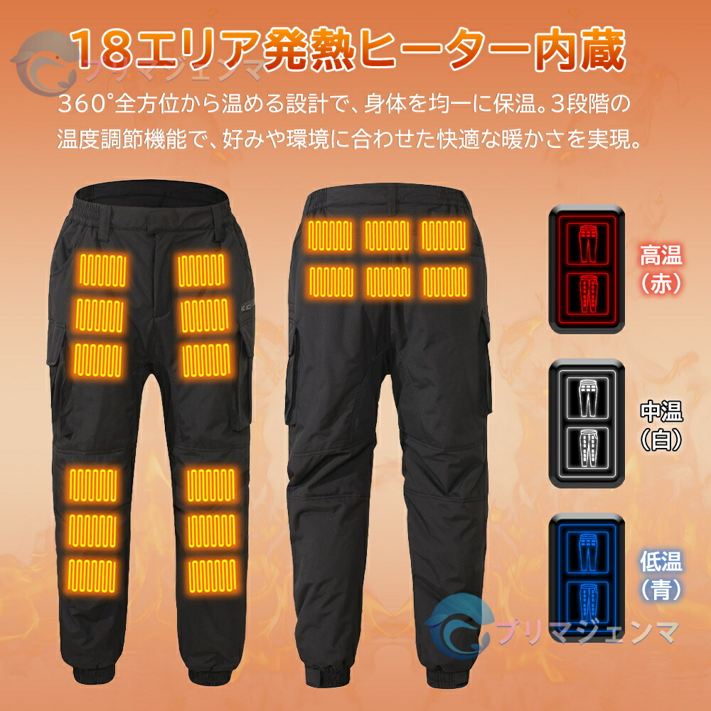 電熱パンツ 20000mAhバッテリー付き ヒーターズボン バイクパンツ 18ヒーター 腰 腹 膝 足首同暖 電熱ロングパンツ USB給電 3 4段温度調整 急速発熱 登山 アウトドア ス 防寒ズボン
